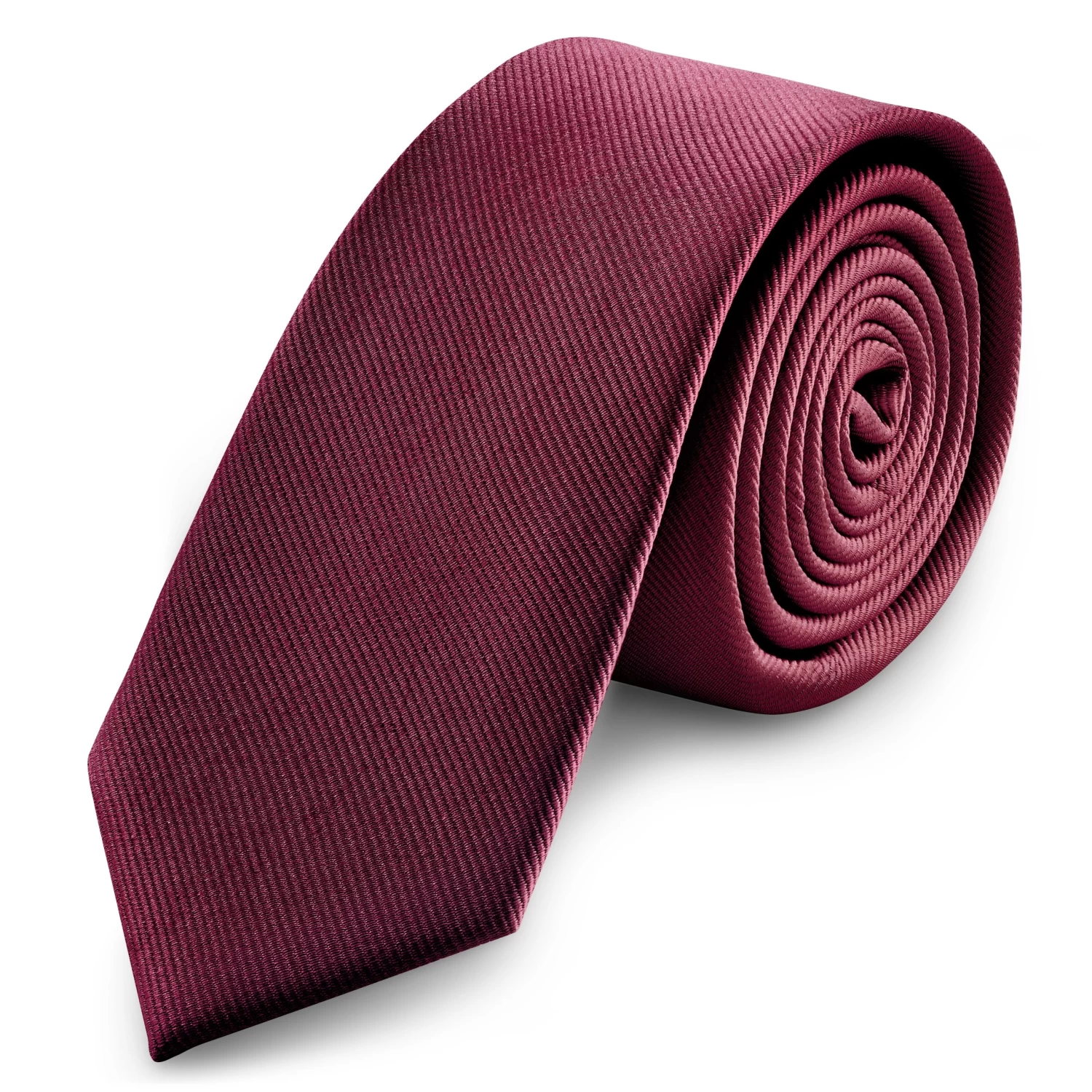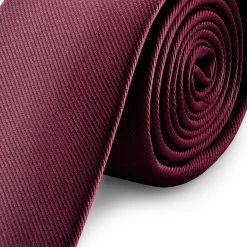 Elevate your style with this burgundy-hued grosgrain skinny tie. Its sleek texture and slender design lend a modern and refined touch to your ensemble.