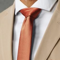 Complete your ensemble with this luxurious cognac skinny tie. Crafted with a sleek grosgrain texture and a slender design, it effortlessly elevates your outfit with a touch of refined sophistication.
