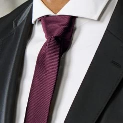 Make a statement with this grosgrain skinny tie – crimson for a luxurious pop of colour. The textured fabric and slender shape effortlessly elevate your look with a touch of sophistication.