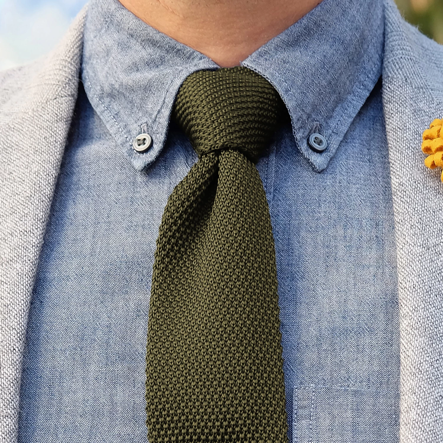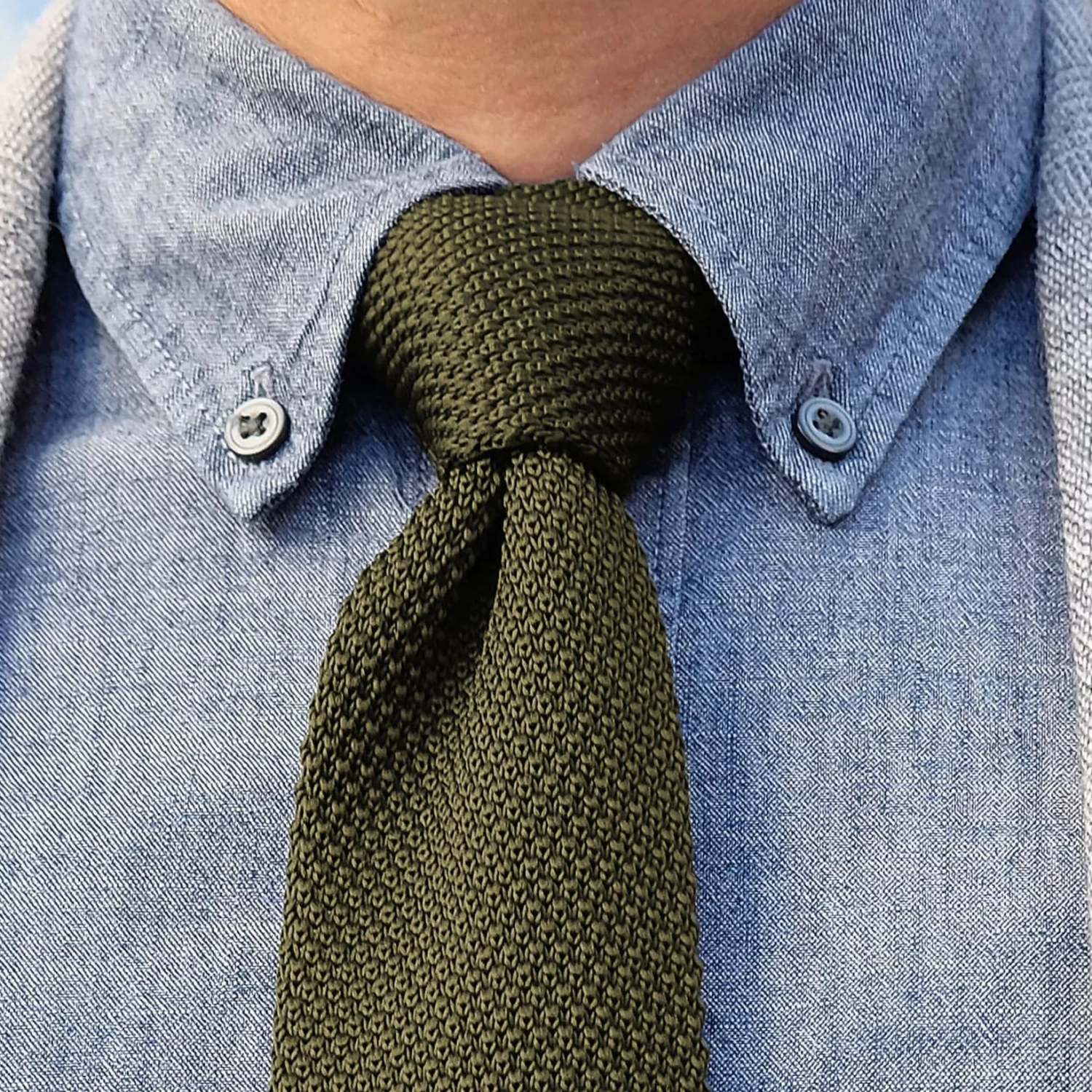For us, this army green is the original color when it comes to knit ties. This one has been made out of polyester fabric for extra comfort and warmth, and will suit any number of colors (we like it with earth tones).