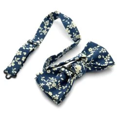 Reminiscent of a summer meadow, this handsome bow tie depicts charmingly detailed flowers on a textured blue background.