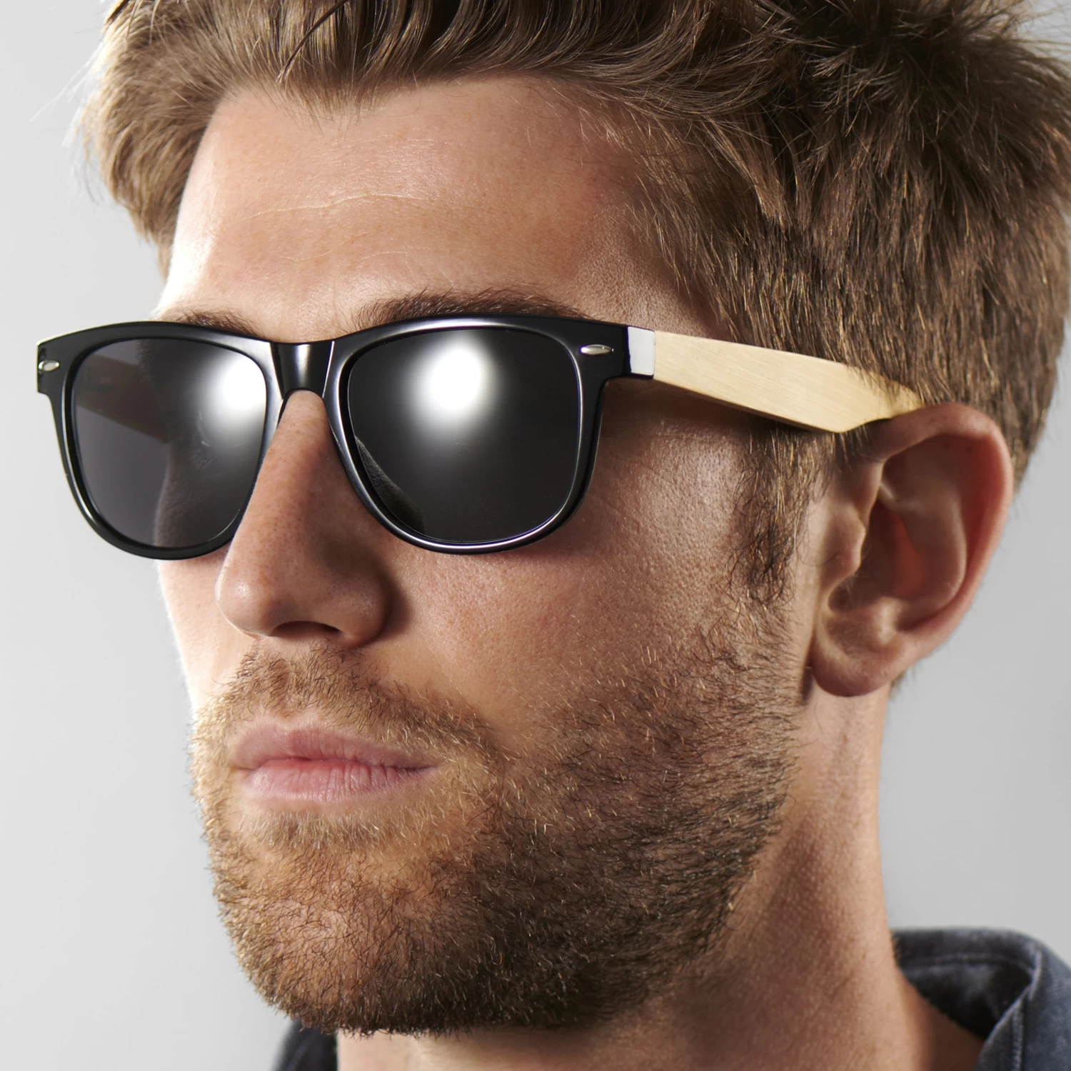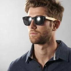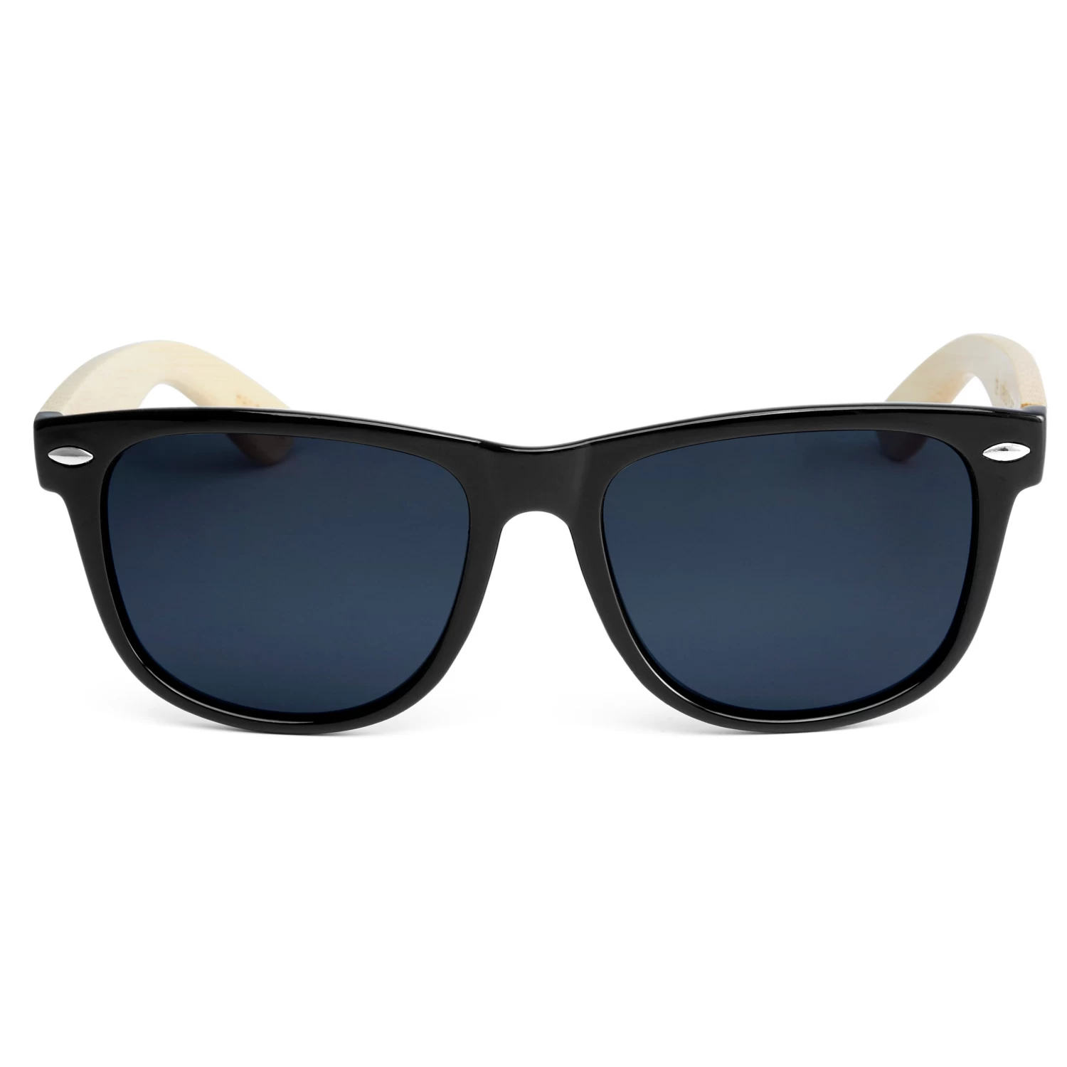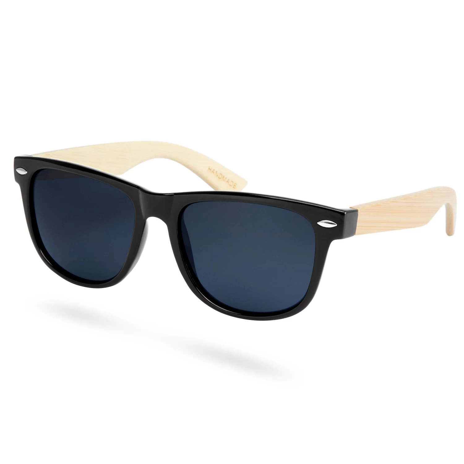 These retro black D-frame sunglasses feature genuine bamboo arms for a unique twist on a classic.