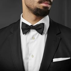 A smooth black bow tie is a basic essential for any man’s wardrobe. Casual or formal, and with any color scheme, this one’s always the right fit.