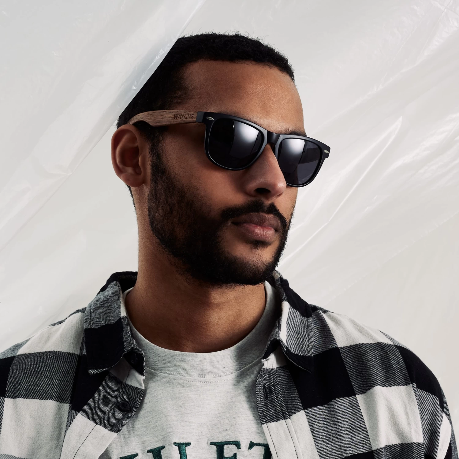 With a classic style and smokey polarized lenses, you’ll fend off whatever the sun throws at you. Black walnut temples add a tinge of raw nature to your look. The temples are proudly engraved with the Waykins logo.