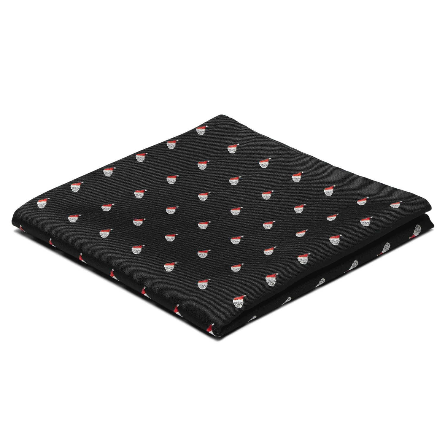 Cut from lightweight, durable polyester, this black Christmas pocket square folds neatly in your pocket without falling or bulging out.