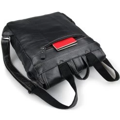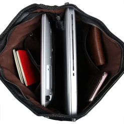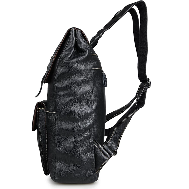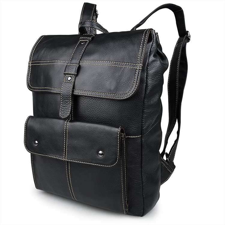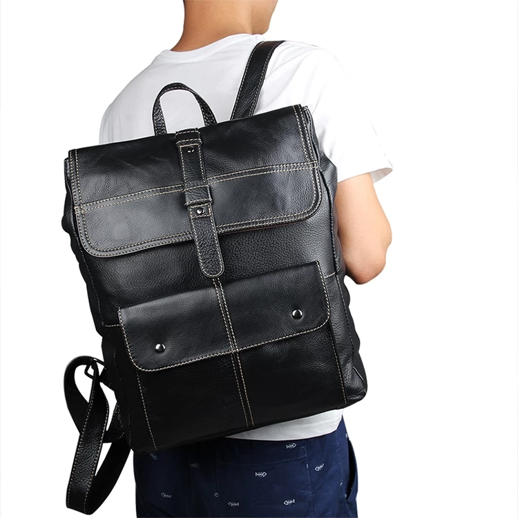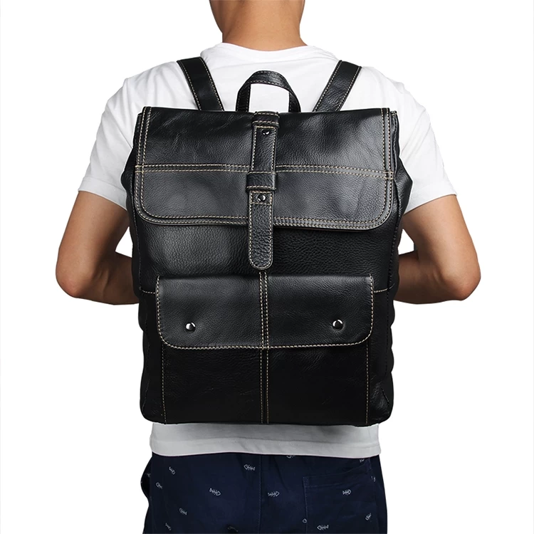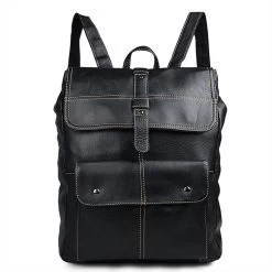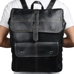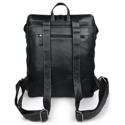 Handsome in black, this genuine top-grain cow leather backpack is what every guy on the move needs.