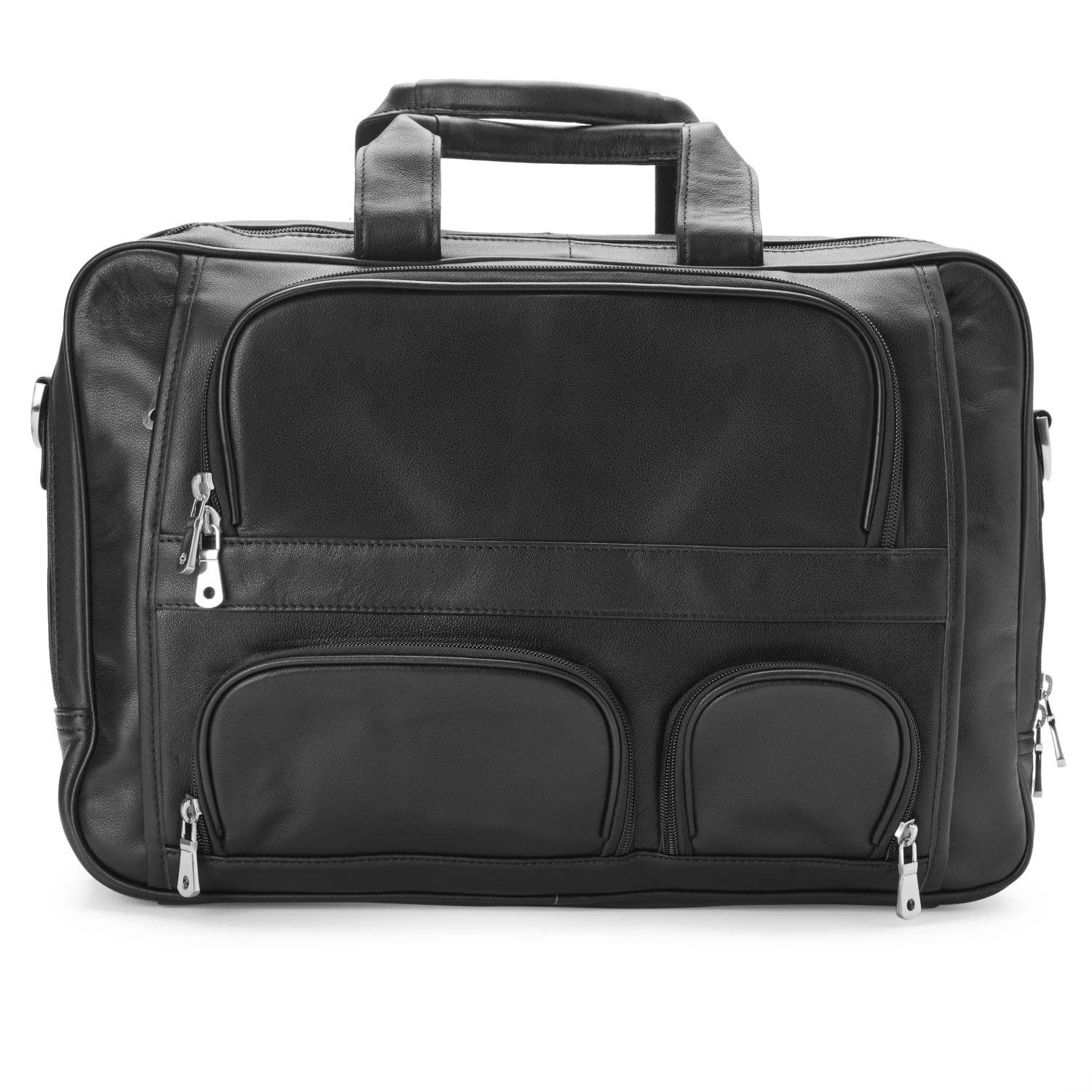 Features multiple pockets on the front for easy access. Comes with a strap on the back that fits over the handle of a suitcase – travel in style. Adjust the shoulder strap for comfort.