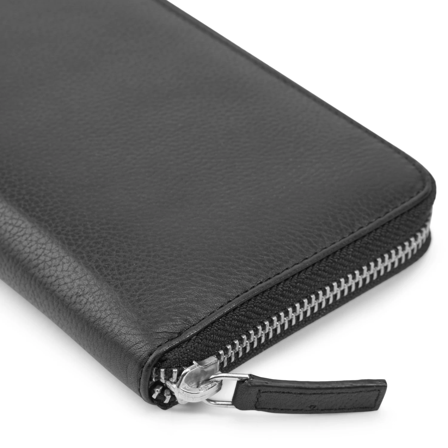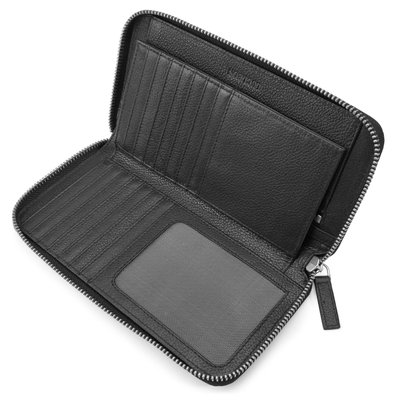 Features RFID protection in the lining to keep cards safe from electronic identity theft. With the sturdy YKK zipper, everything stays locked inside.