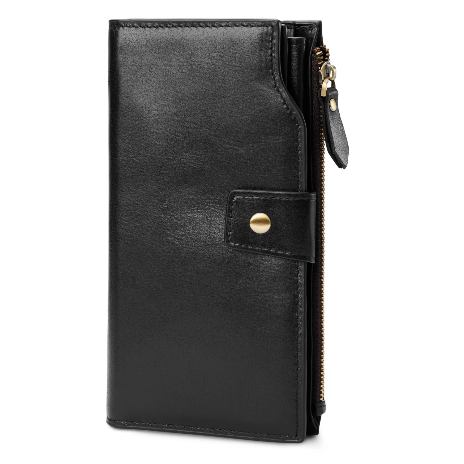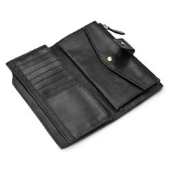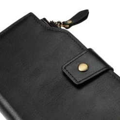 Discover the perfect blend of security and style with this RFID wallet. Safeguard your cards from unauthorised scanning and store your notes and coins in the zip and button pockets. Crafted from genuine leather that’ll only look and feel better with time.