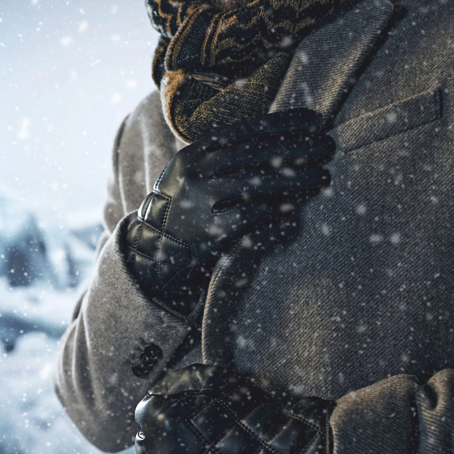 These men’s gloves boast a supple leather construction that ensures a comfortable and flexible fit.