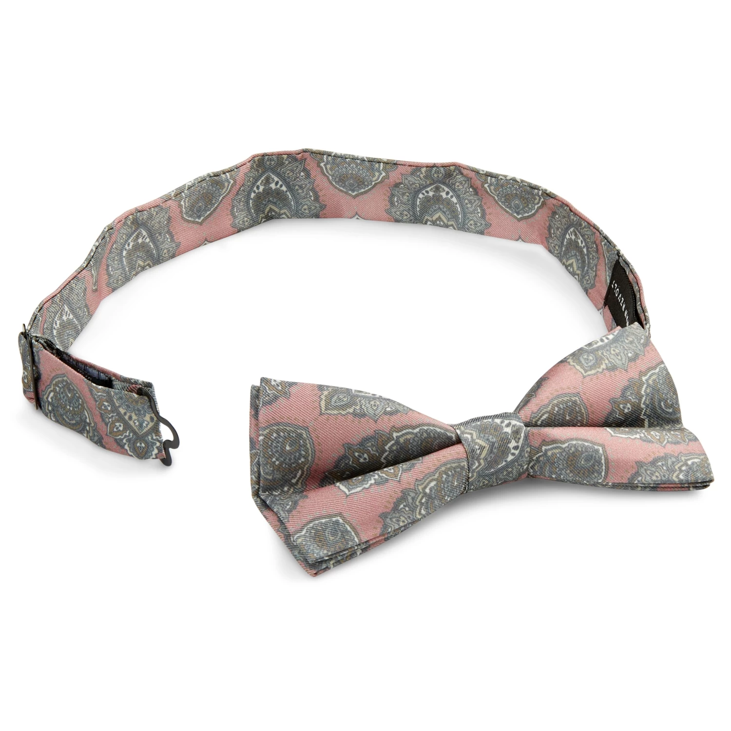 This bow tie celebrates one of the most versatile color combinations: subtle pink and gray. Complements any look – from jeans to a blazer – and your neck will thank you for wearing 100% soft silk.