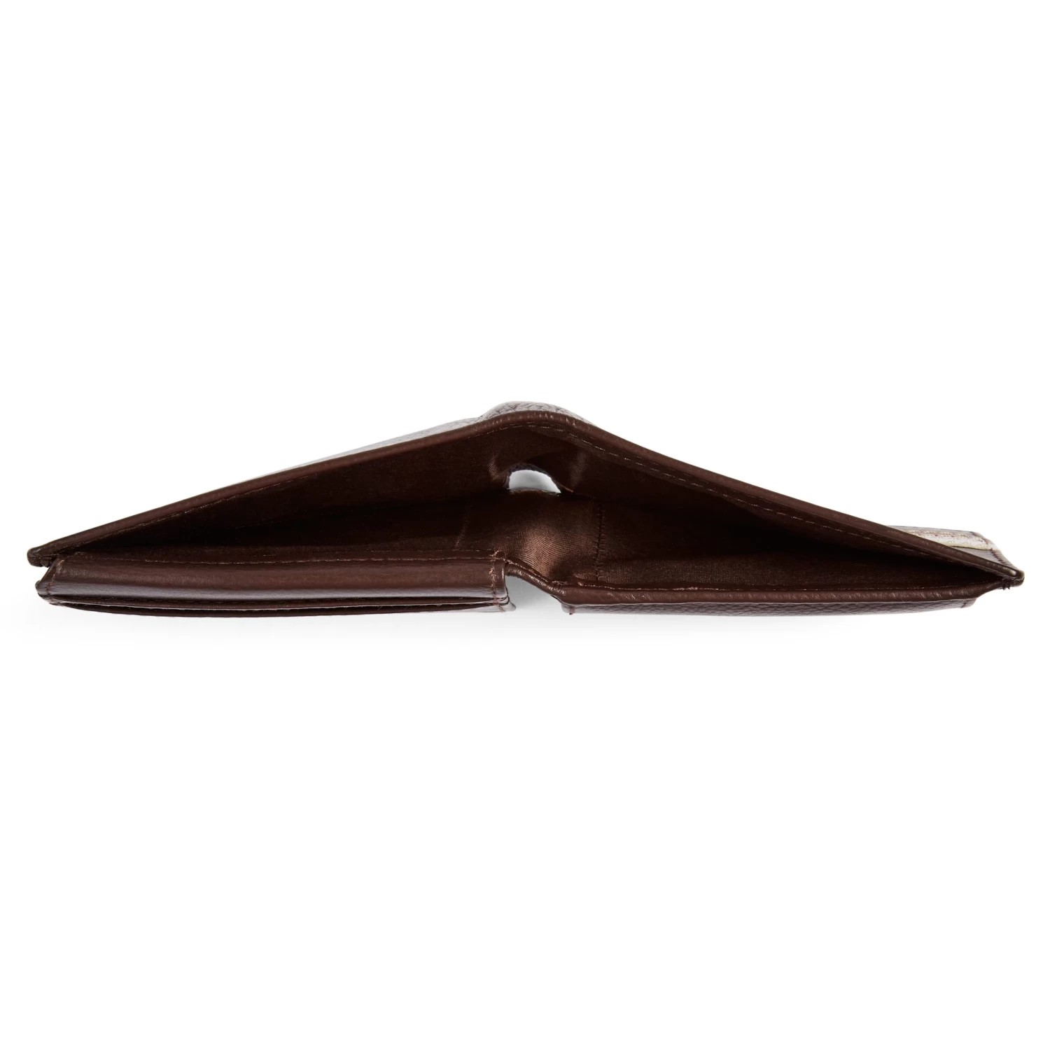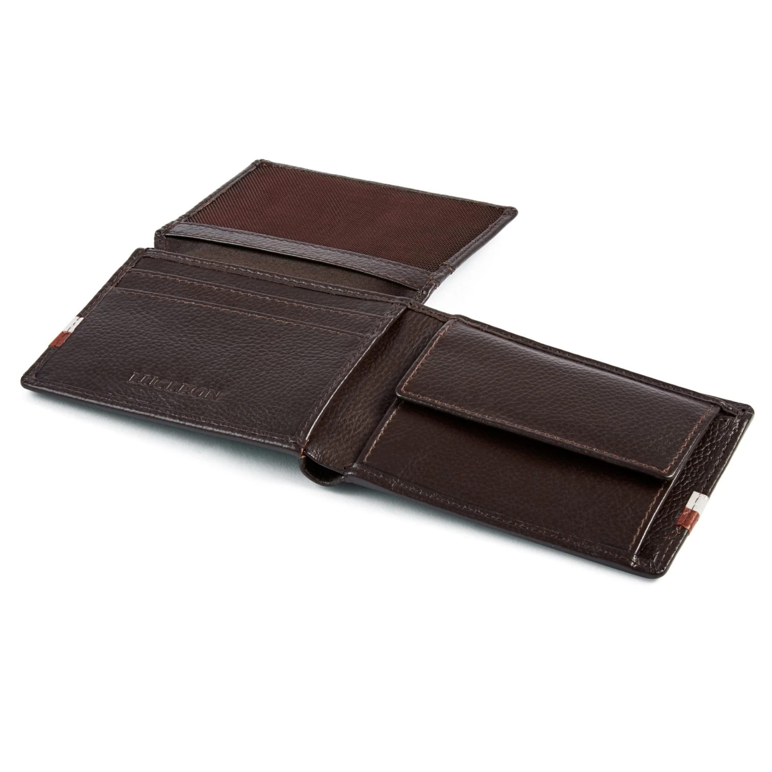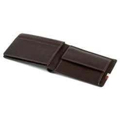 The interior features four credit card slots, paper money compartments, a dedicated spot for your ID, and a roomy coin pouch. Full RFID protection provided.