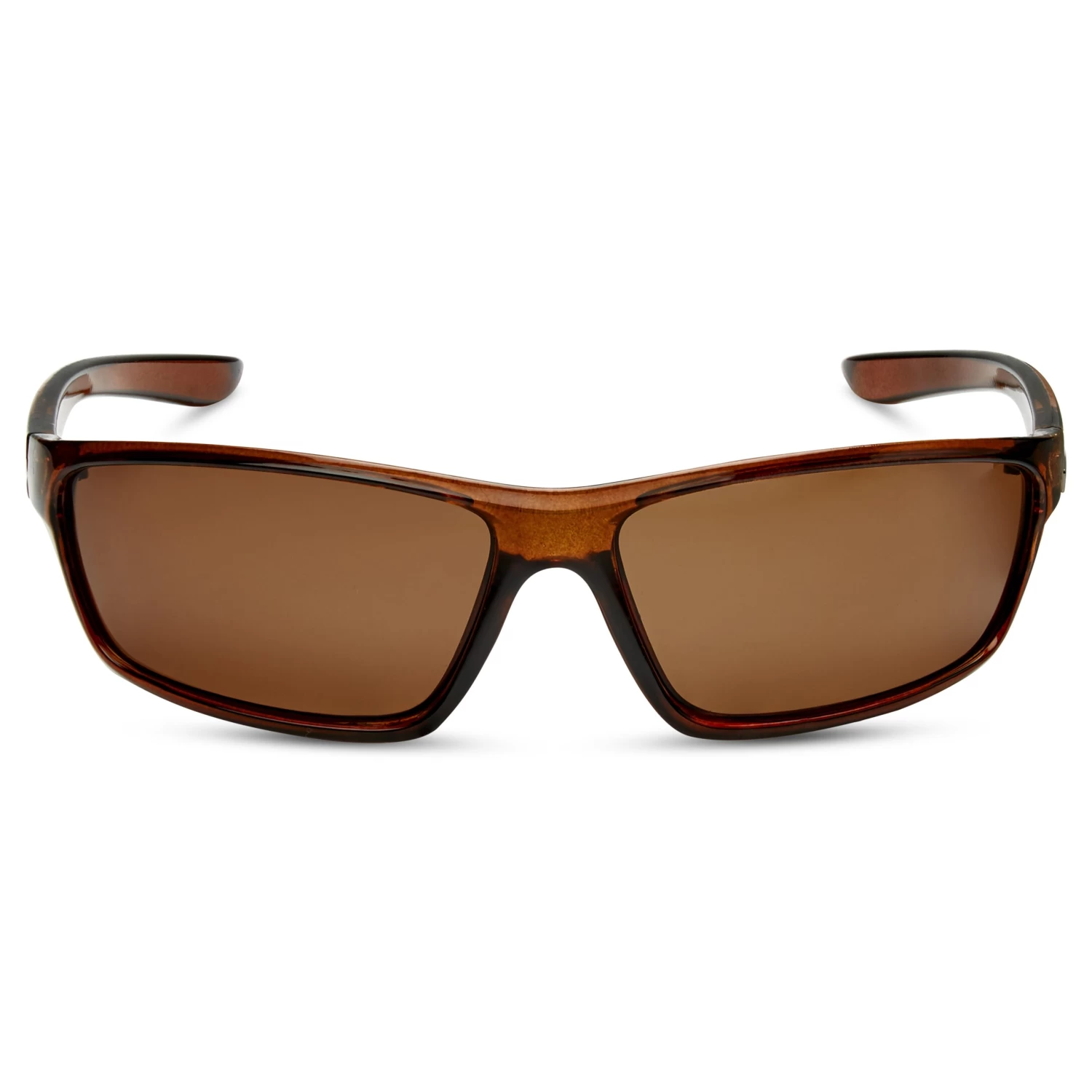 Choose a pair of men’s shades with personality. Slip on these slim and sleek brown sunglasses in a sporty design to add excitement to your everyday look.