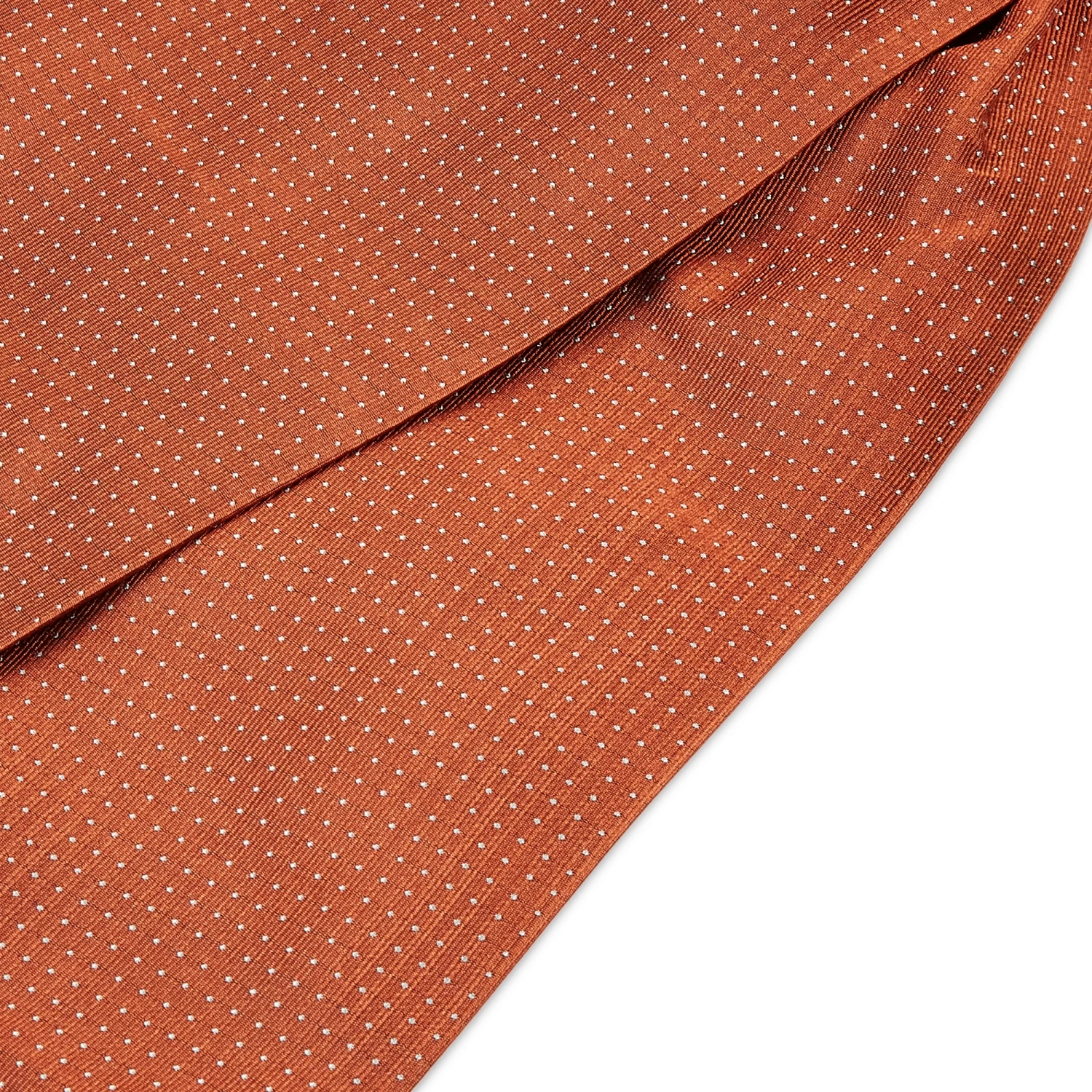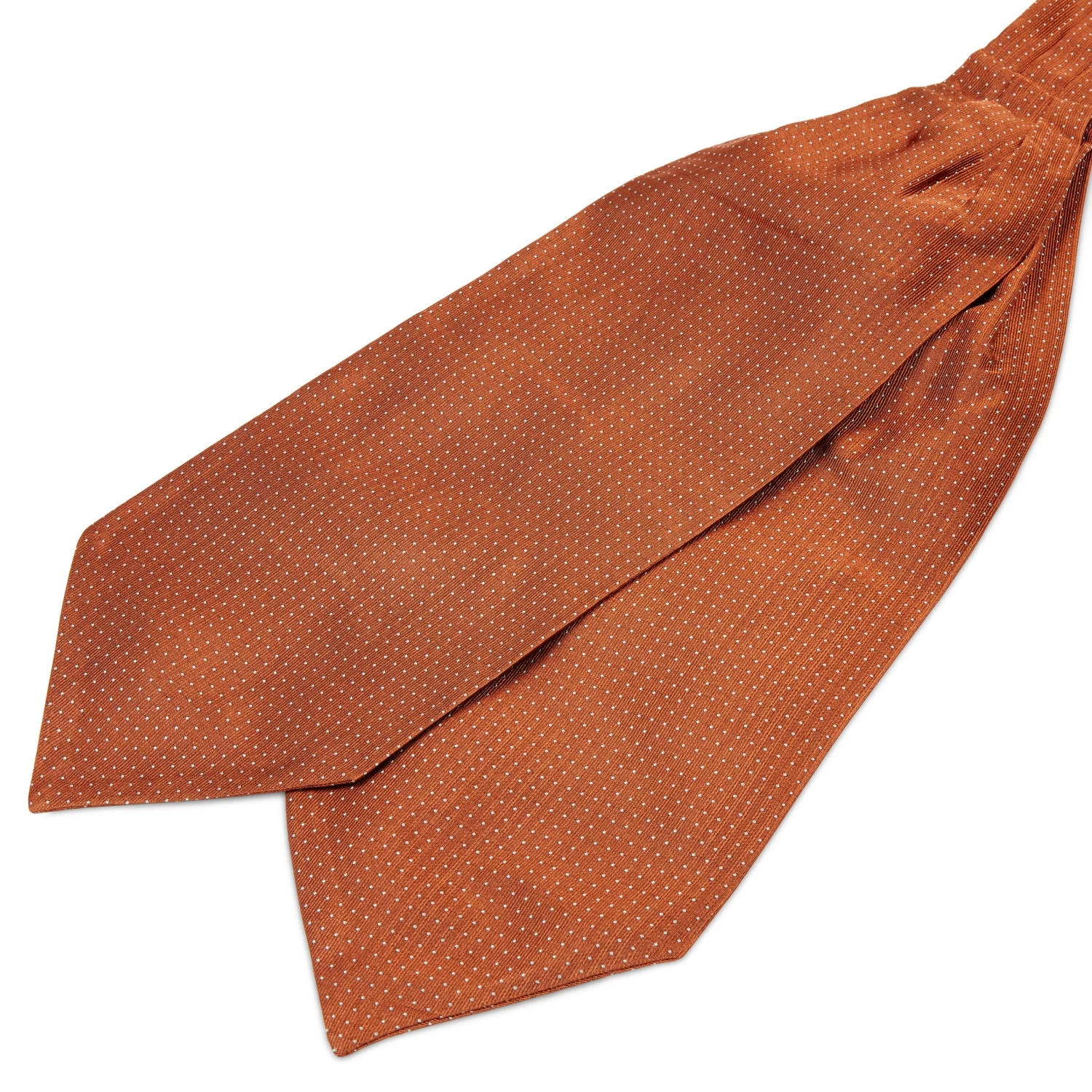 This sophisticated cravat comes in a gorgeous unique burnished brown color refined by a subtle polka dot pattern.
