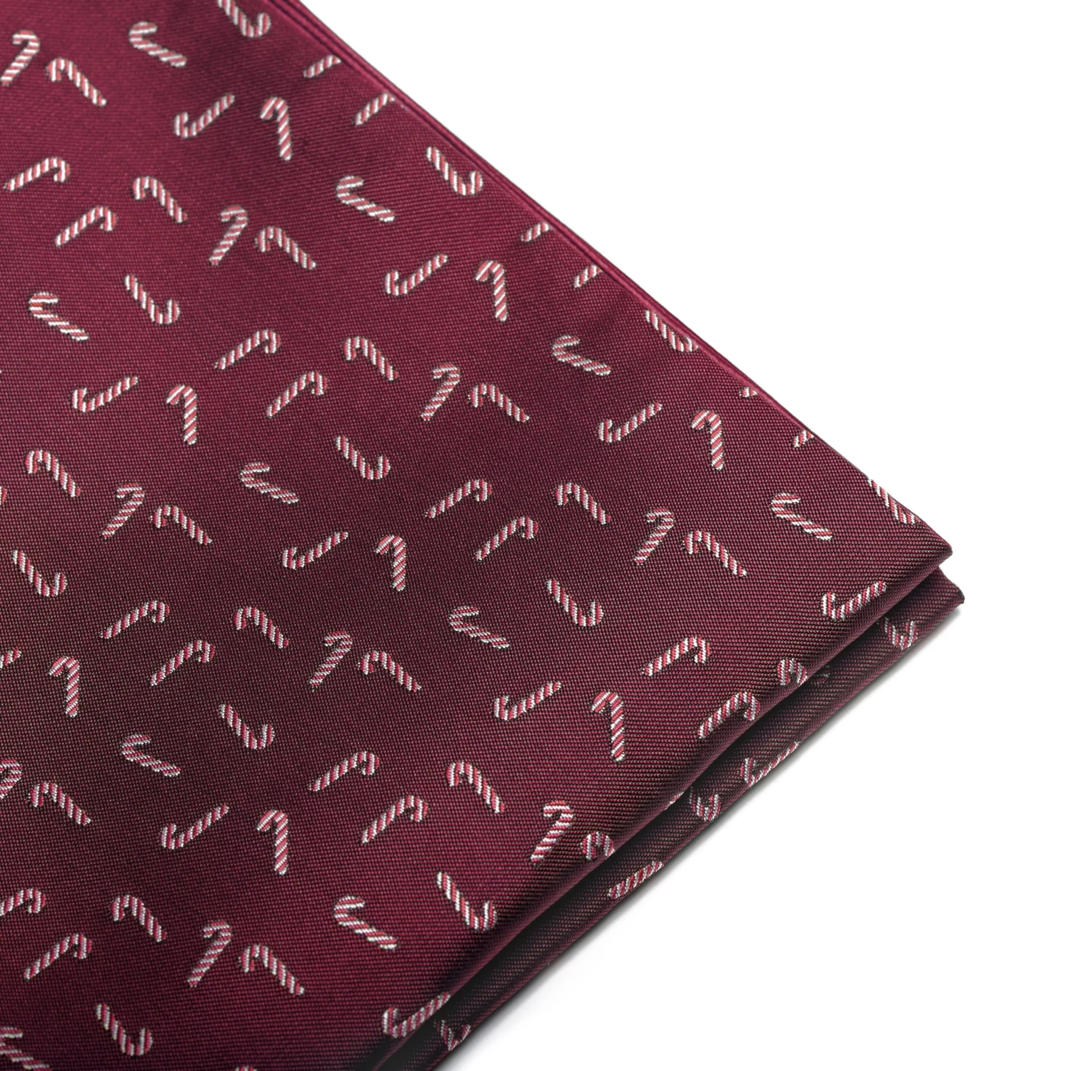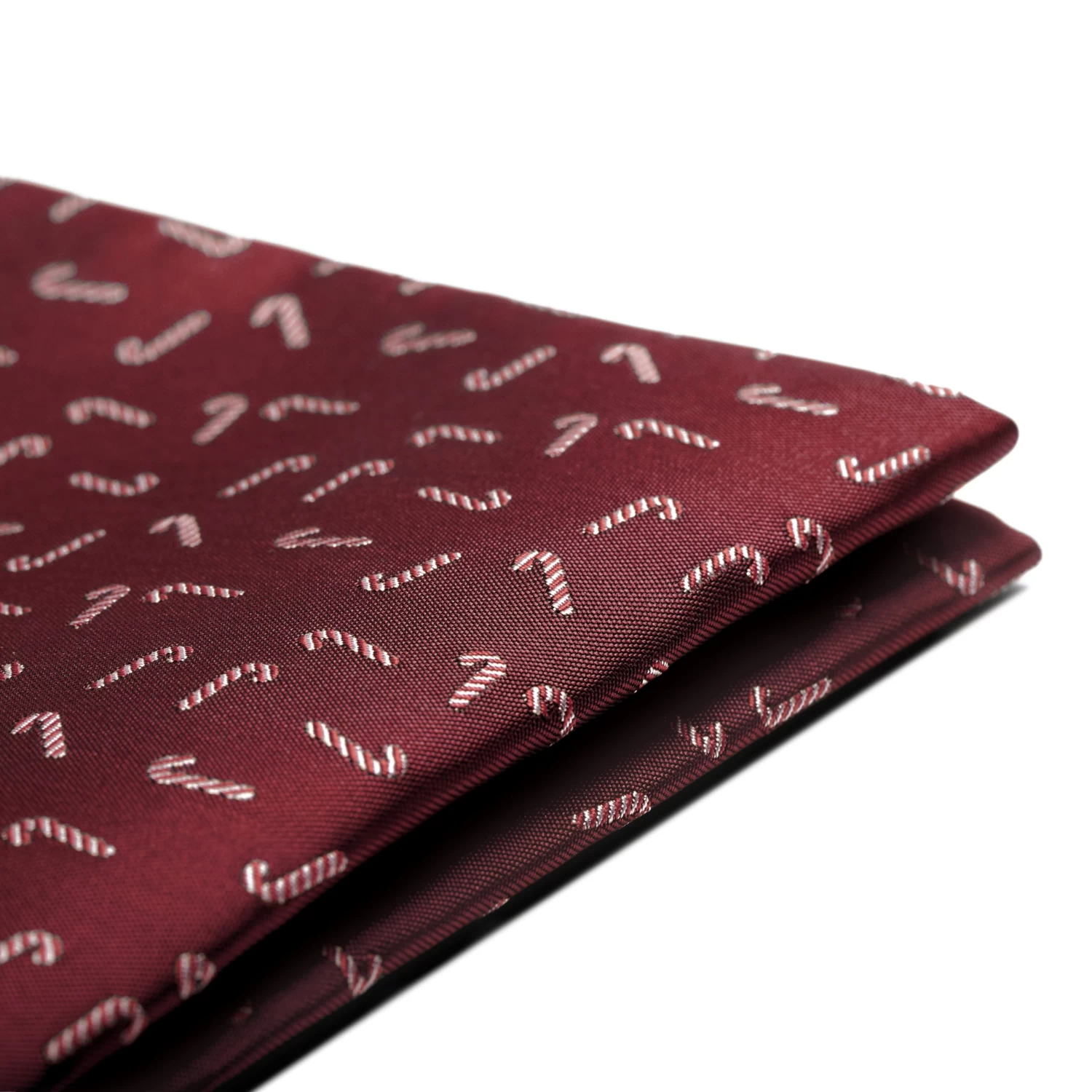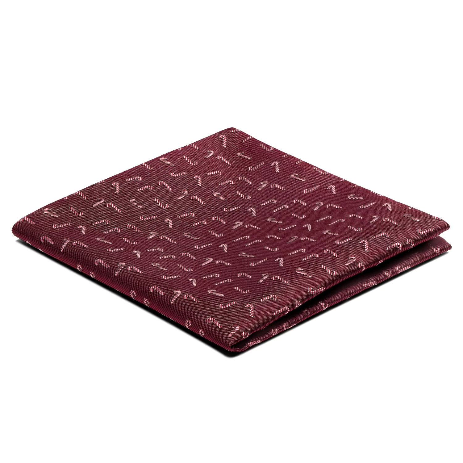Cut from durable fabric, this Christmas pocket square features floating candy canes on a subtle burgundy background. All that’s missing is the right fold. Try the Presidential.