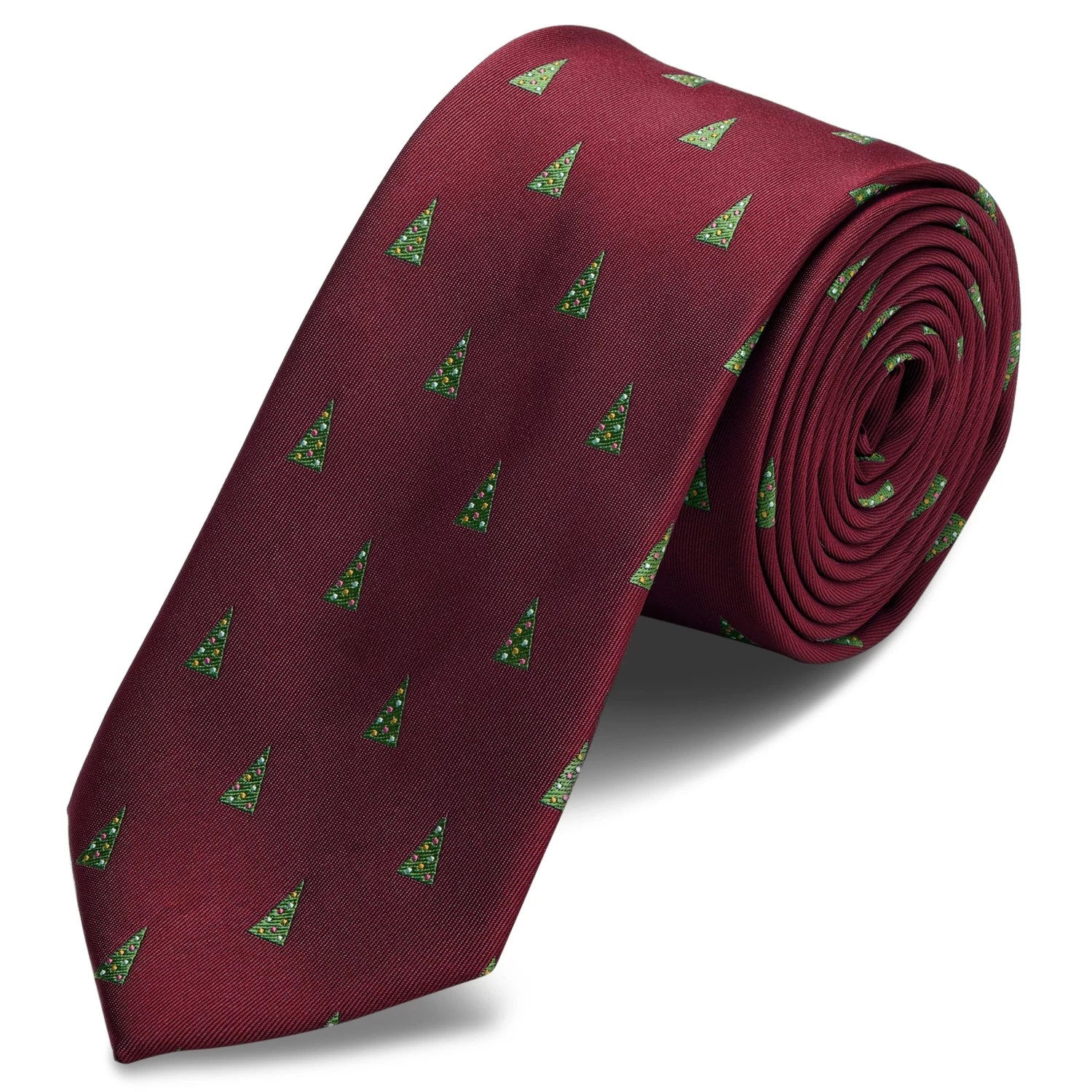 Cut at a standard length, this lightweight necktie is covered with tiny Christmas trees to show off your holiday spirit.