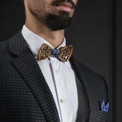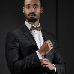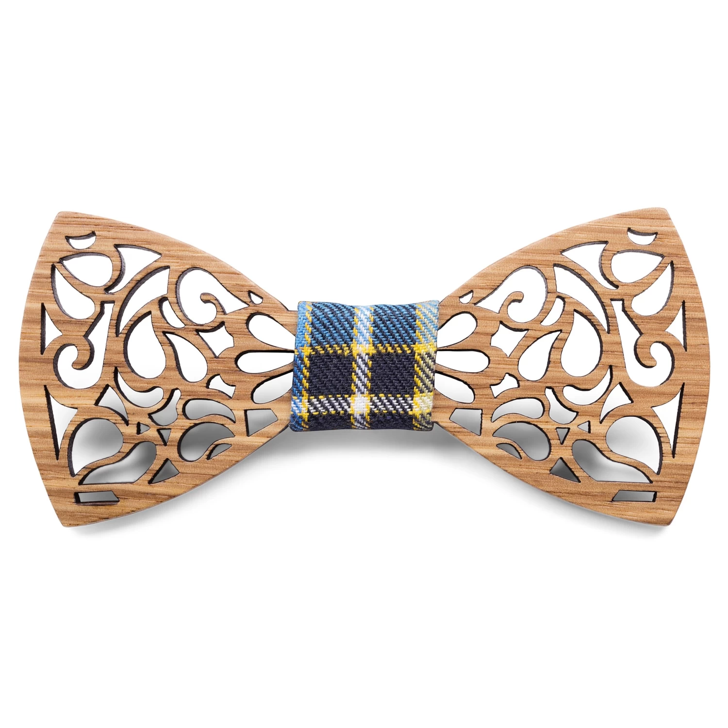 The stunning natural zebrawood injects style and freshness into your attire. Tartan cloth center and carved patterned wings contrast magnificently.