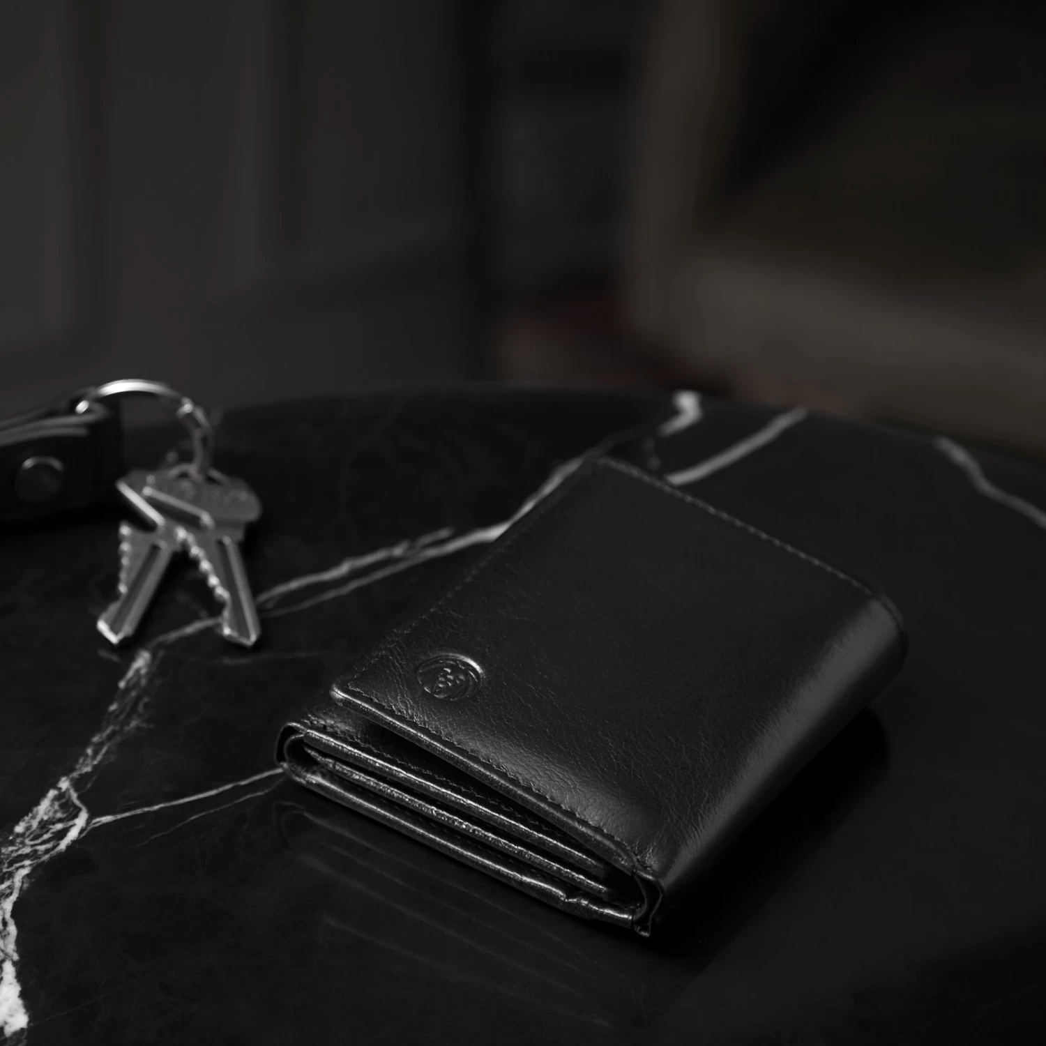 Its compartments are strategically designed so that you can keep your cash, credit cards, and ID in one place, but find them quickly when you need to. It has 12 cards slots, one pocket for notes and one ID compartment. Wrap it up and you’re ready to go downtown!