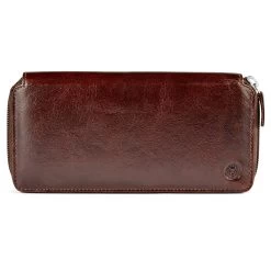 The exterior closes securely with a strong YKK zipper. Crafted with genuine leather.