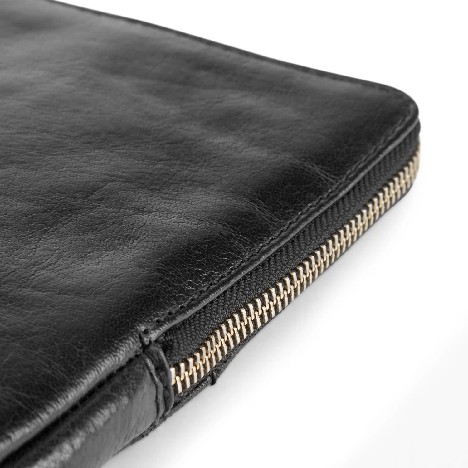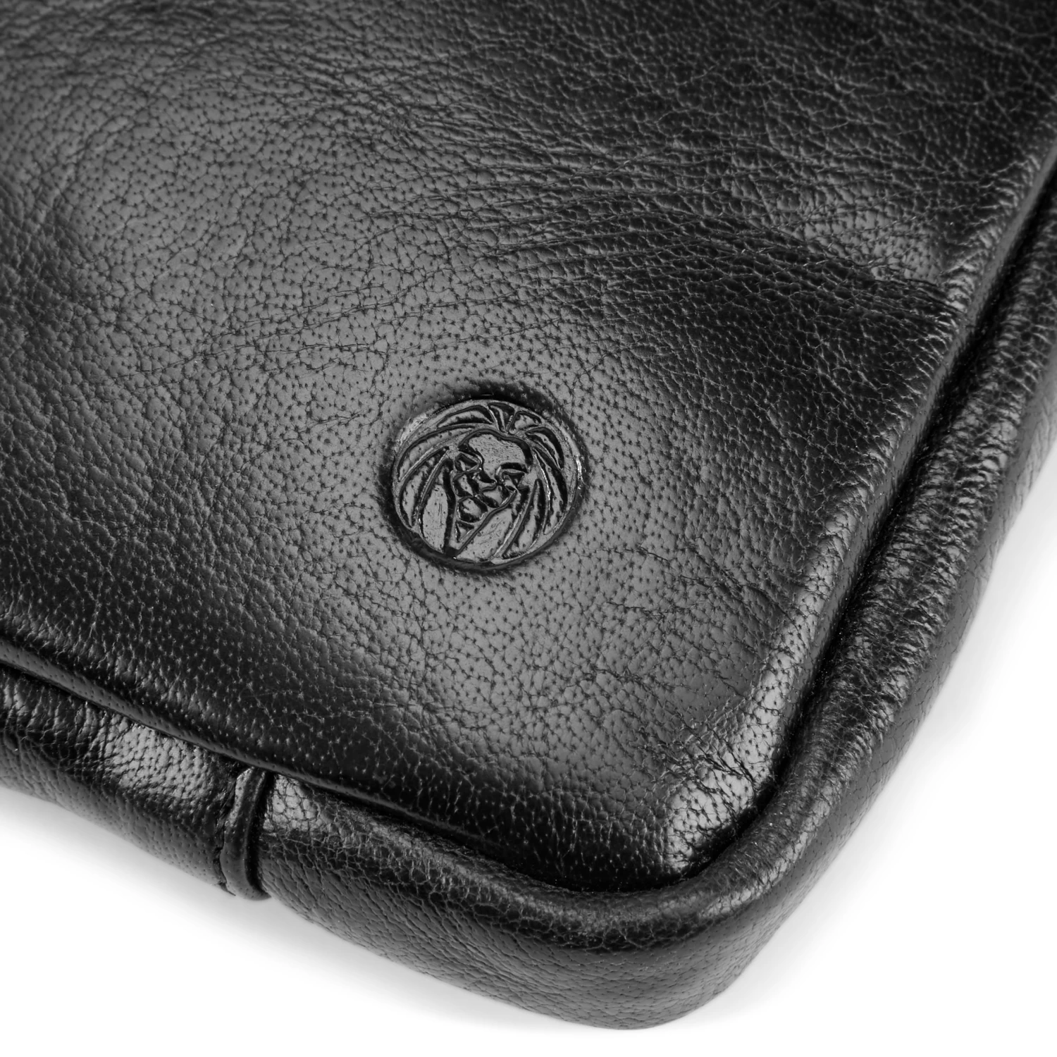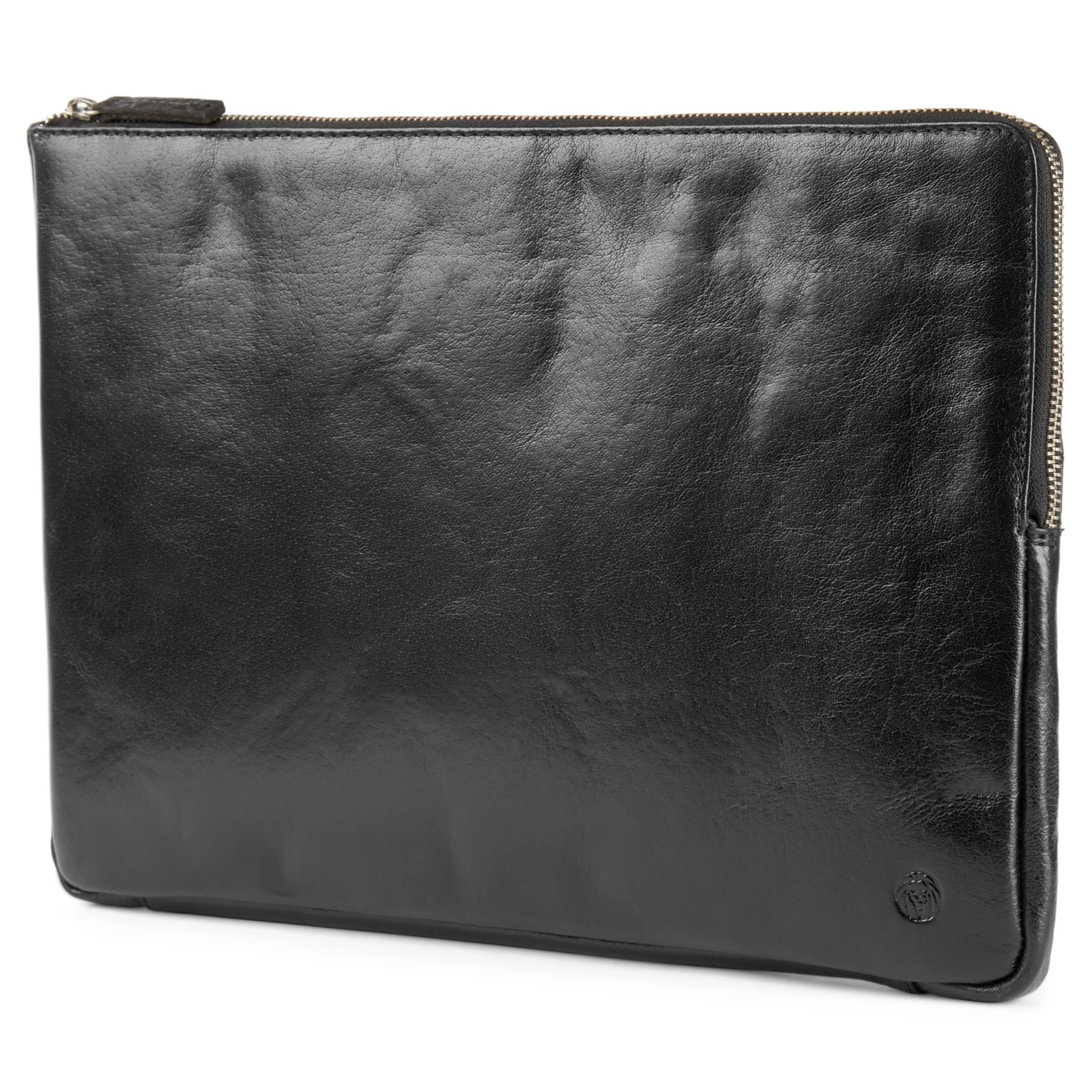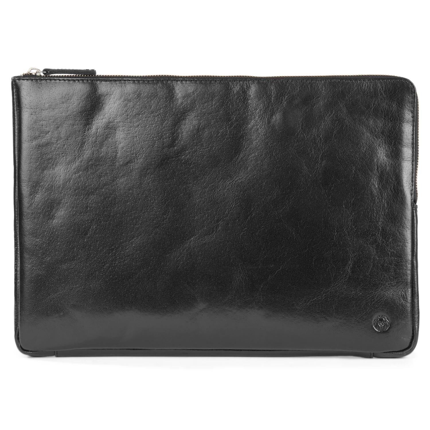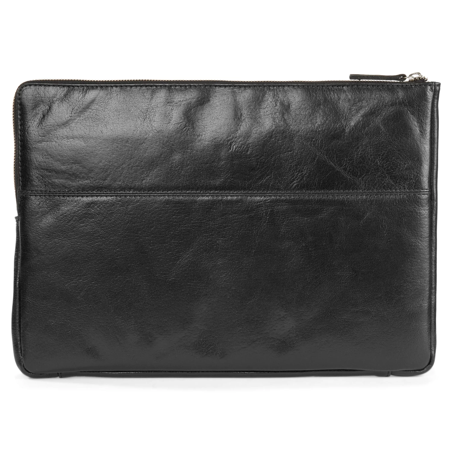 Stash your laptop inside this sleek leather sleeve. Features genuine cowhide construction that gets softer and more attractive with time. Closes with a strong YKK zipper.