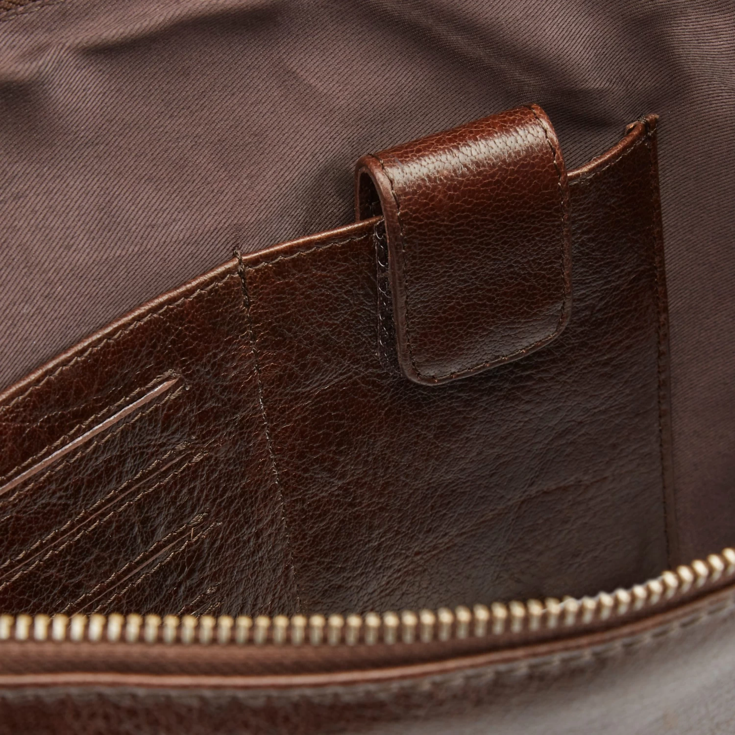 The zippered interior compartment features a wide array of spaces for your other smaller essentials like keys, pens, credit cards, etc.