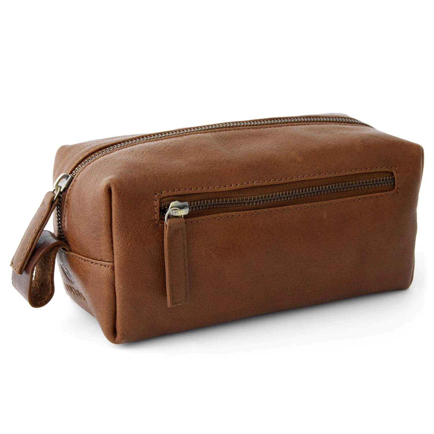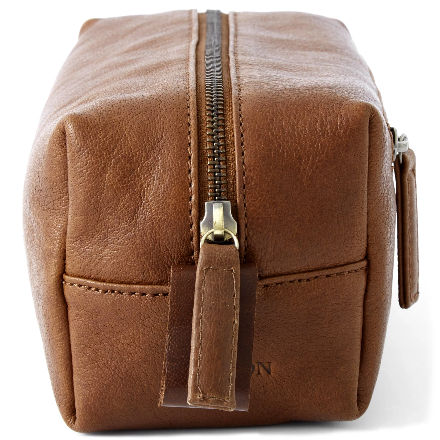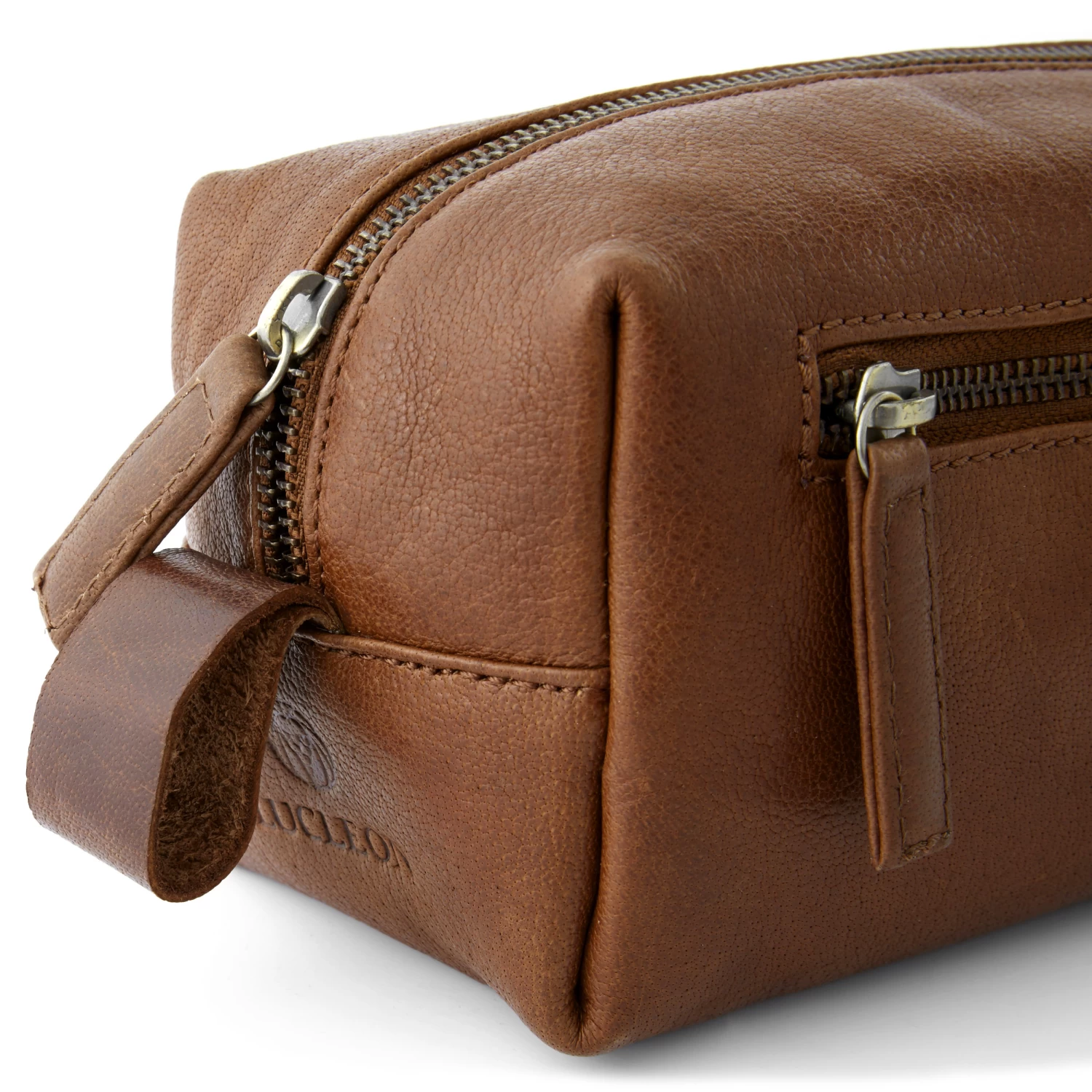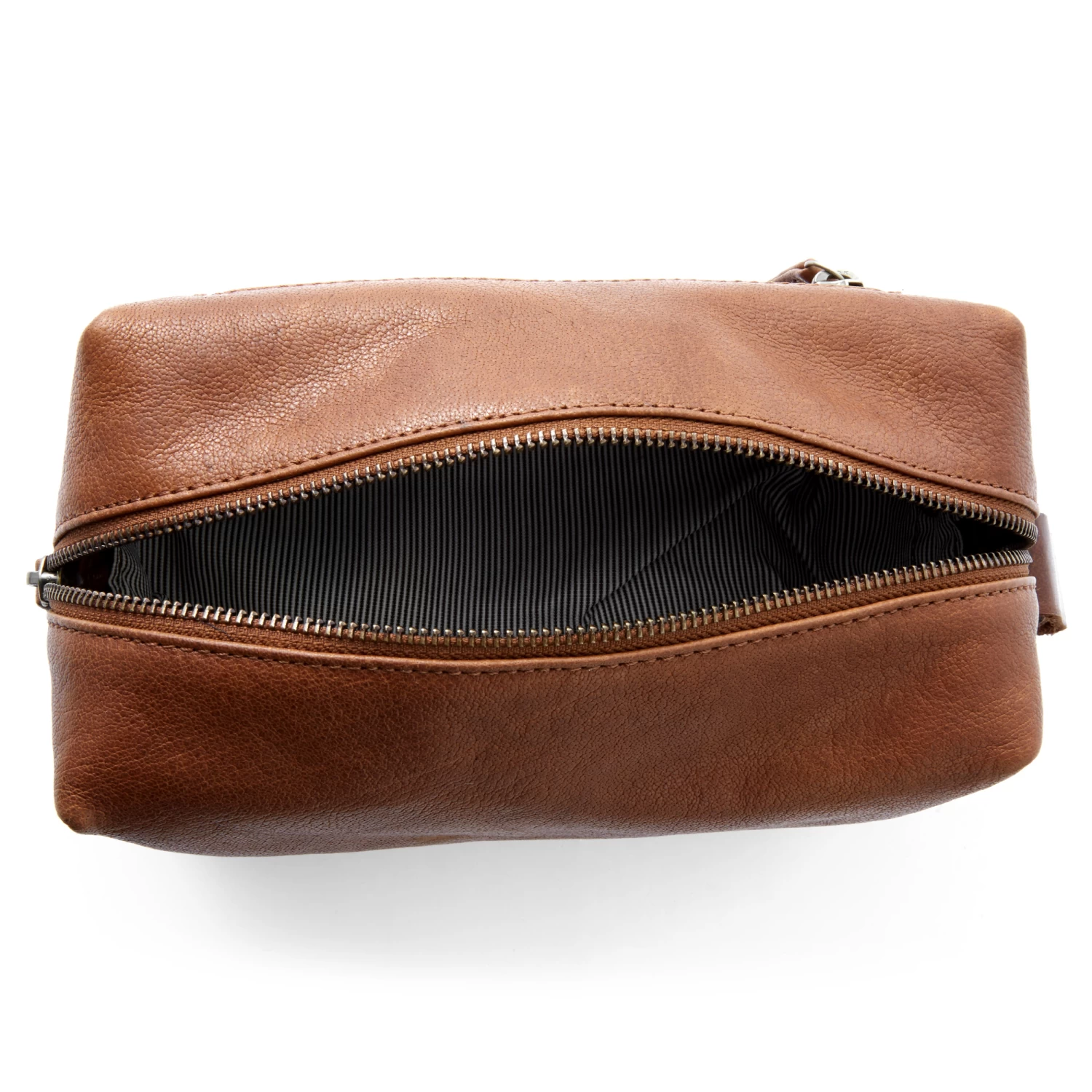 This stunning brown leather washbag is the ideal home for all your favorite toiletries. Made from raw cowhide, each bag is unique, making it yours and yours only.