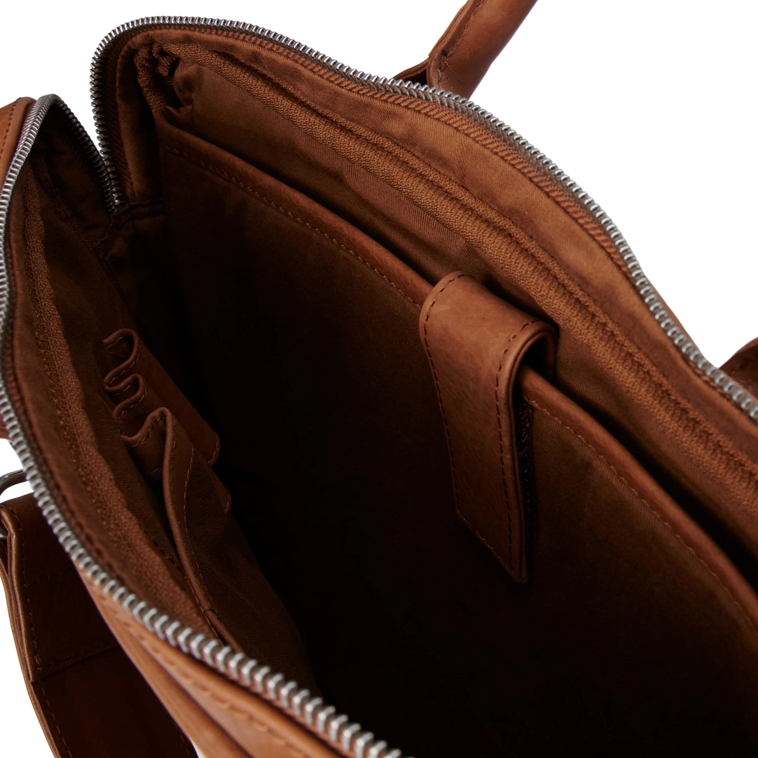 Constructed in soft, light-brown leather that builds character with every carry and ages beautifully.