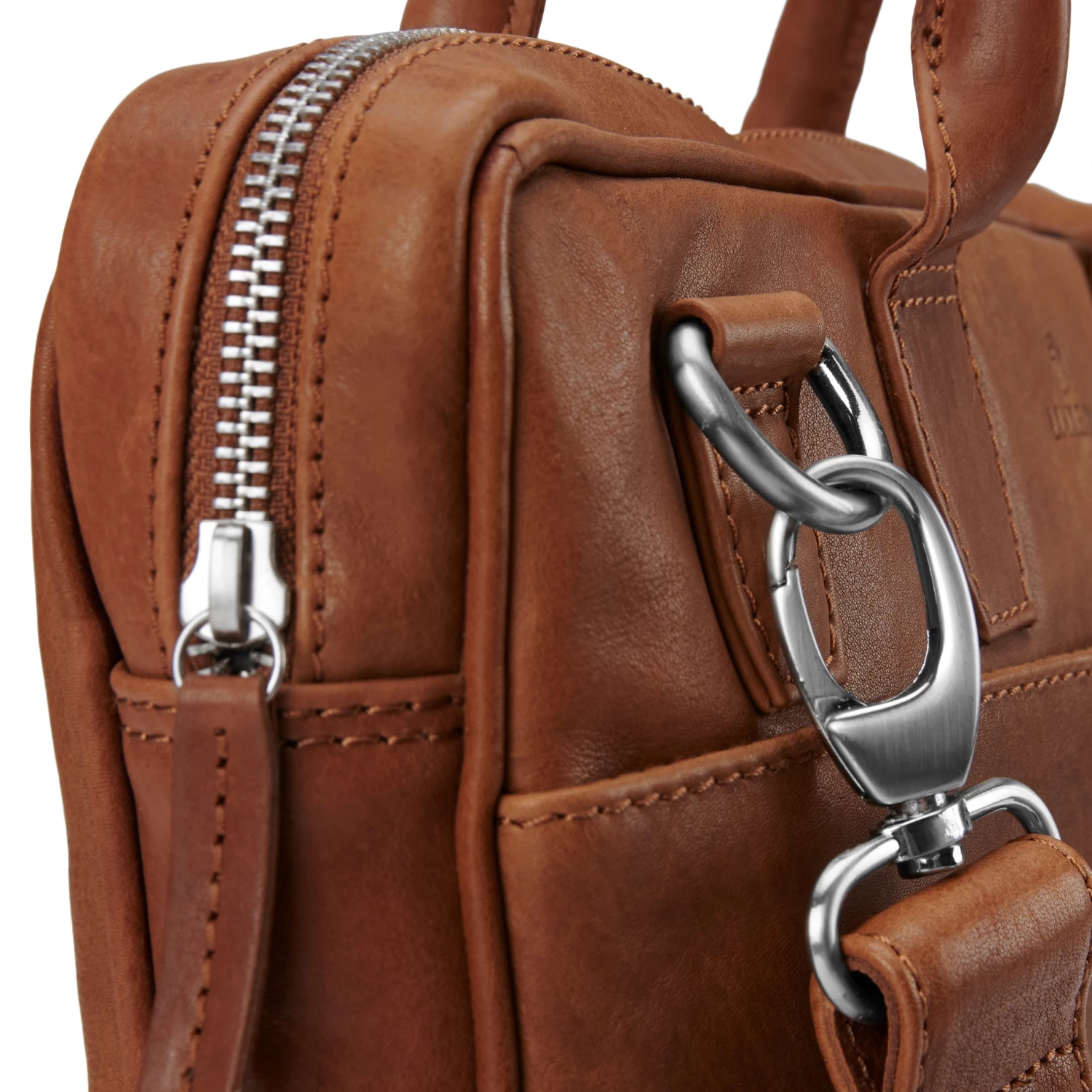 With clean lines, genuine leather and the right amount of space, this laptop bag is slim and compact without sacrificing space or design.