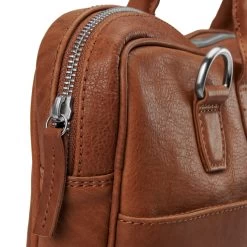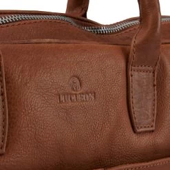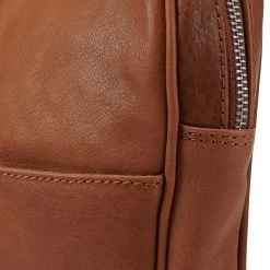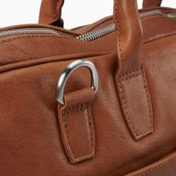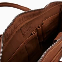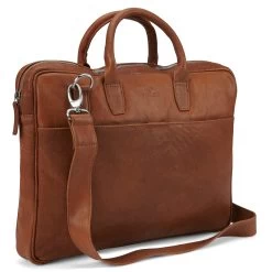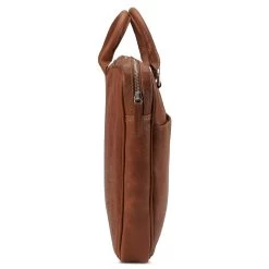 This light-brown/tan leather bag for men boasts a slim profile and ample storage space.