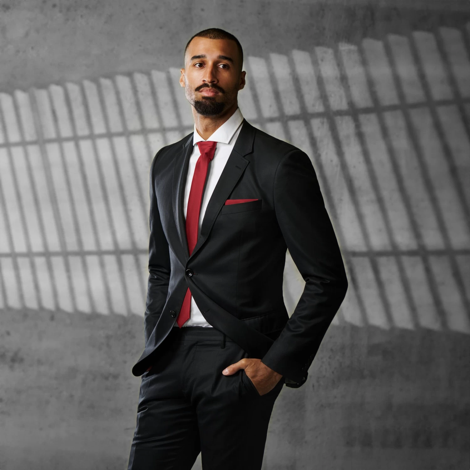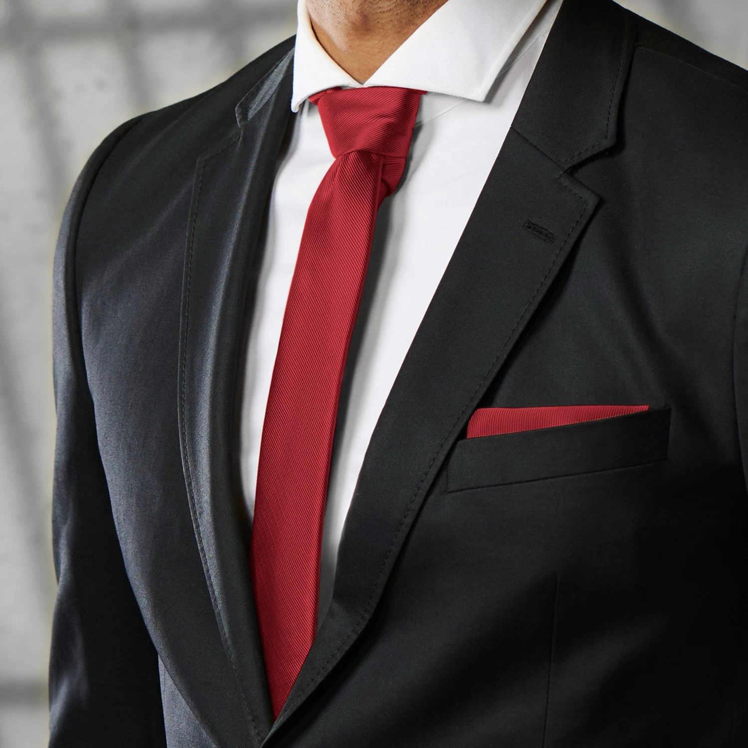 This burgundy tie is made from silk twill and looks great against complementary dark colors.