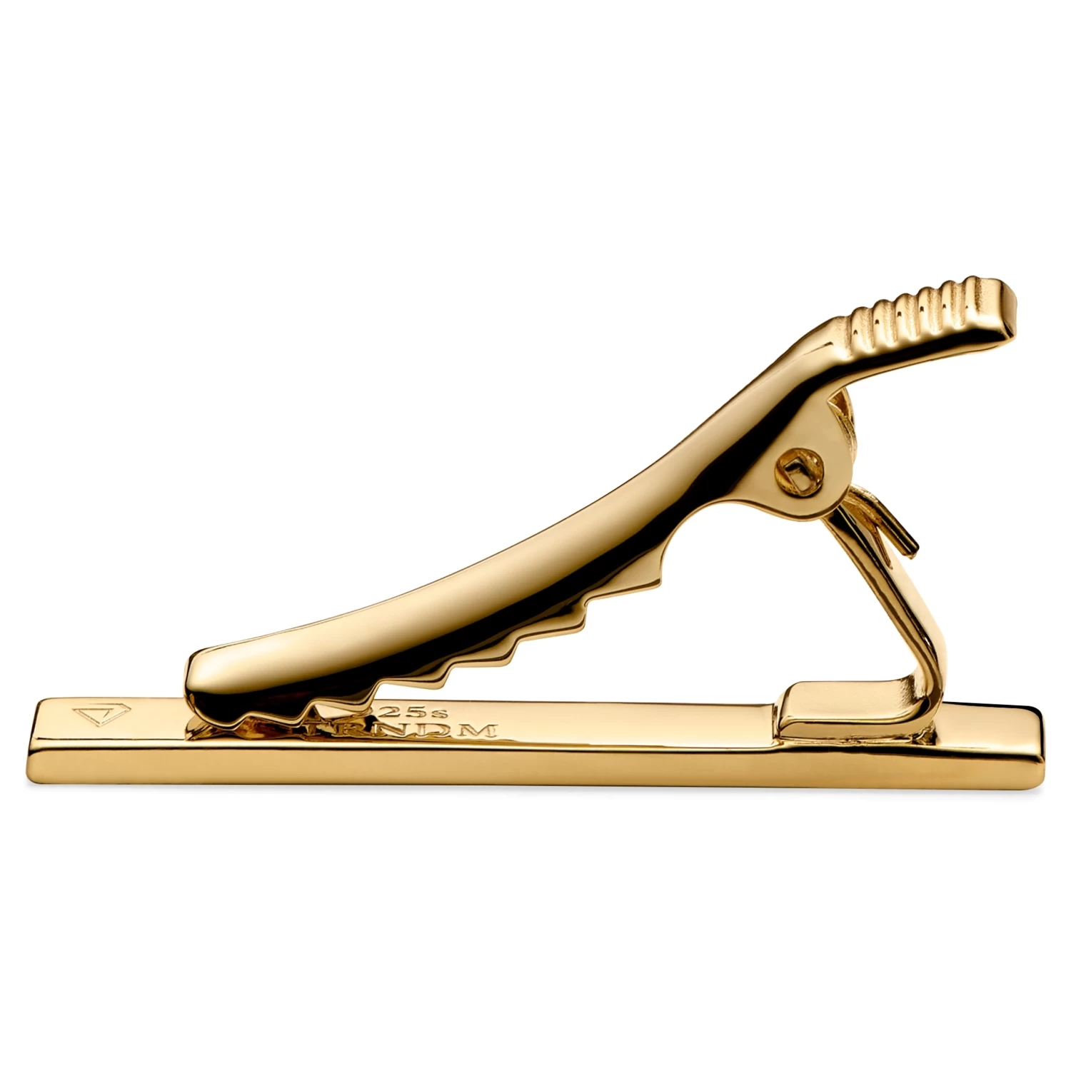 Smart, elegant and guaranteed to complement any dress code, this classic 925 silver tie clip is plated with 14K gold for a royal finish.