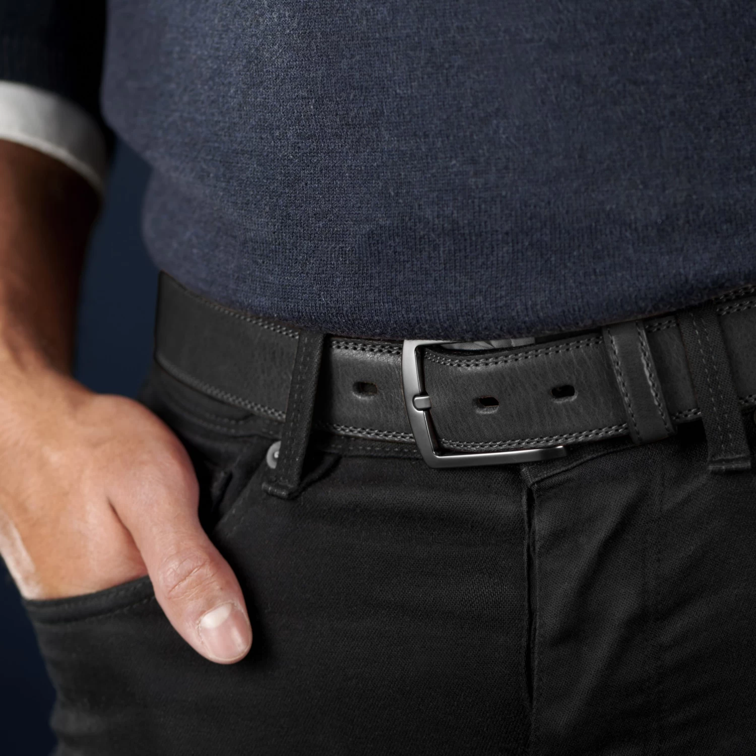 Designed and made in Denmark, this handsome black belt does more than just keep your trousers up. Crafted in vegetable-tanned leather with a nickel-free buckle, it adds a stylish touch to everything from jeans to a suit.