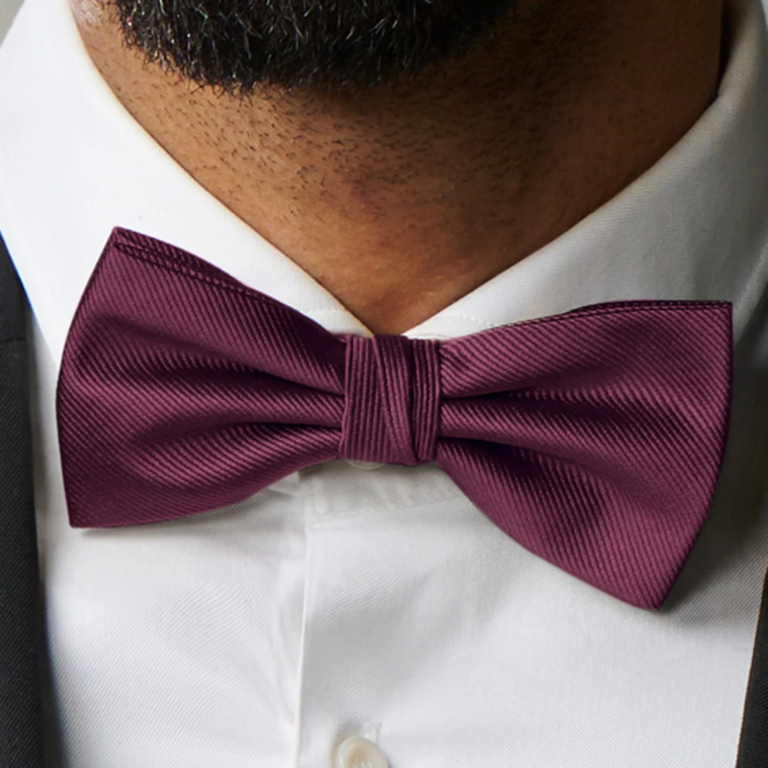 Make your suit yours with classic accessories – like a crimson bow tie for a sophisticated, put-together look. Grosgrain-patterned for subtle texture.