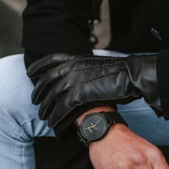 These smooth black leather gloves for men will keep your fingers toasty, without getting sweaty. Finely perforated for increased breathability, but lined with a snug fleece lining.