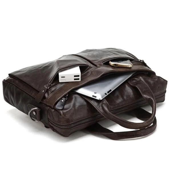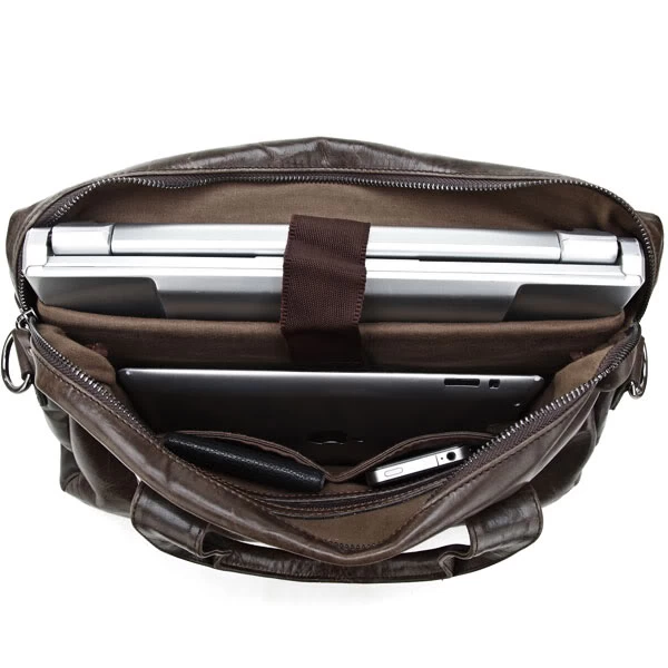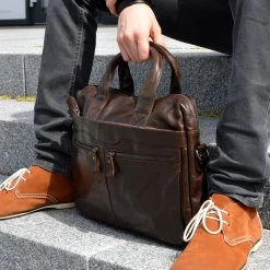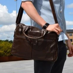 Fashioned from high-quality chestnut brown cow leather, this beauty comes with plenty of space for your laptop, documents, books, and more. Inside, you’ll find 1 large central compartment and a padded pocket for safely carrying your laptop, as well as smaller pockets for phones, keys, and your wallet.