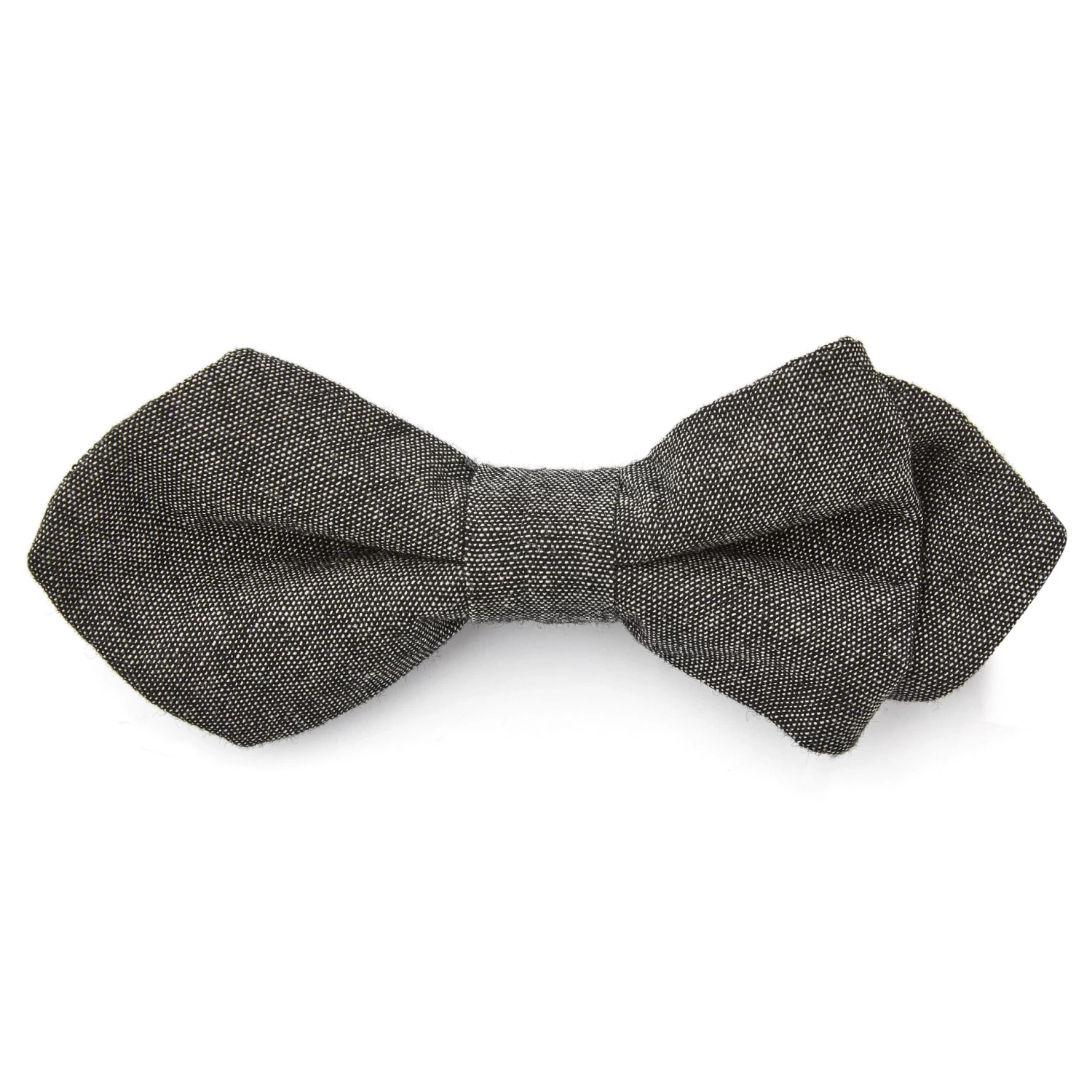 Finely woven black and white cotton fabric produces a chic grey hue. Pre-tied for your convenience. Adjustable.