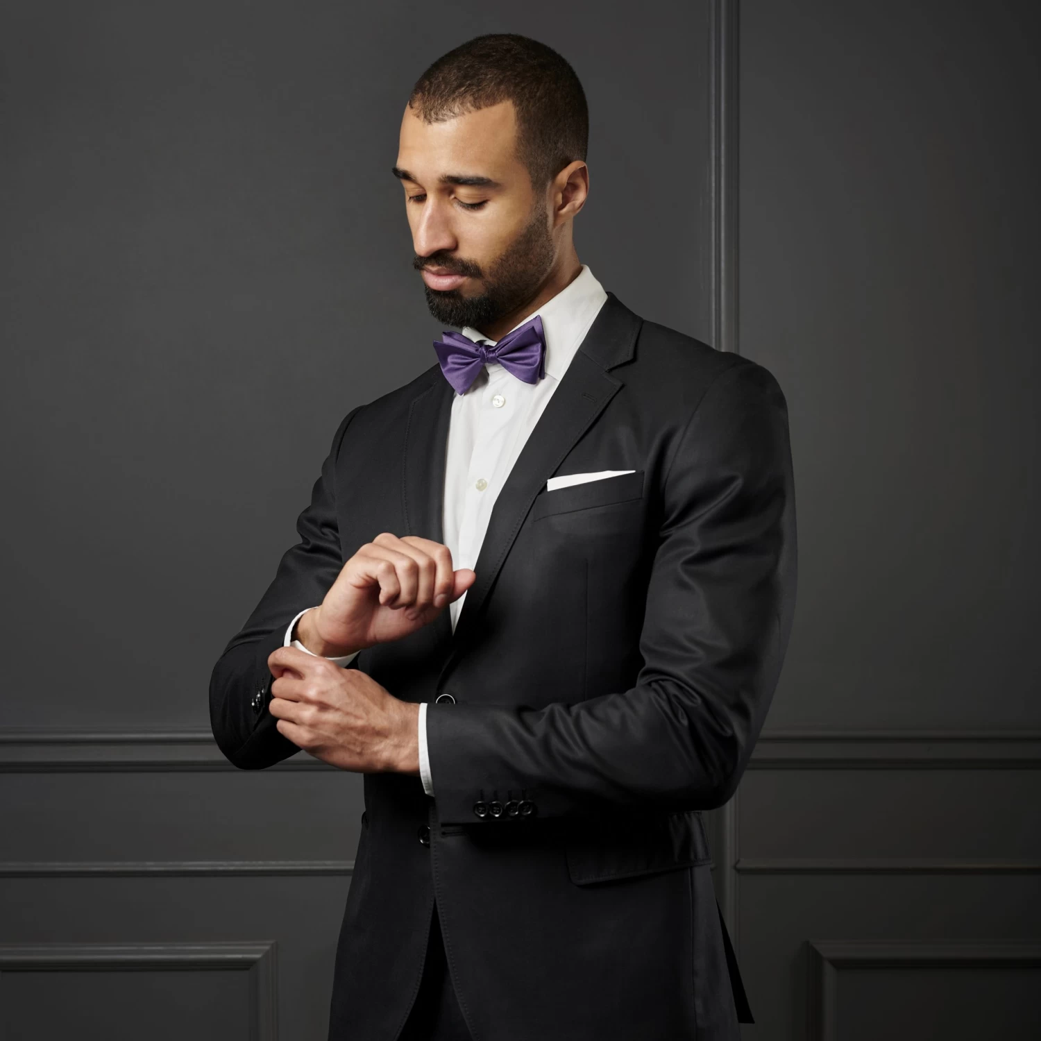 In a deep and dashing shade of purple, this bow tie is dazzlingly stylish.