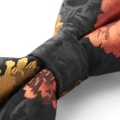 Embrace the power of colour and express your vibrant personality with this stunning black, orange, and yellow flower bow tie. Adorned with a captivating and bright floral pattern.