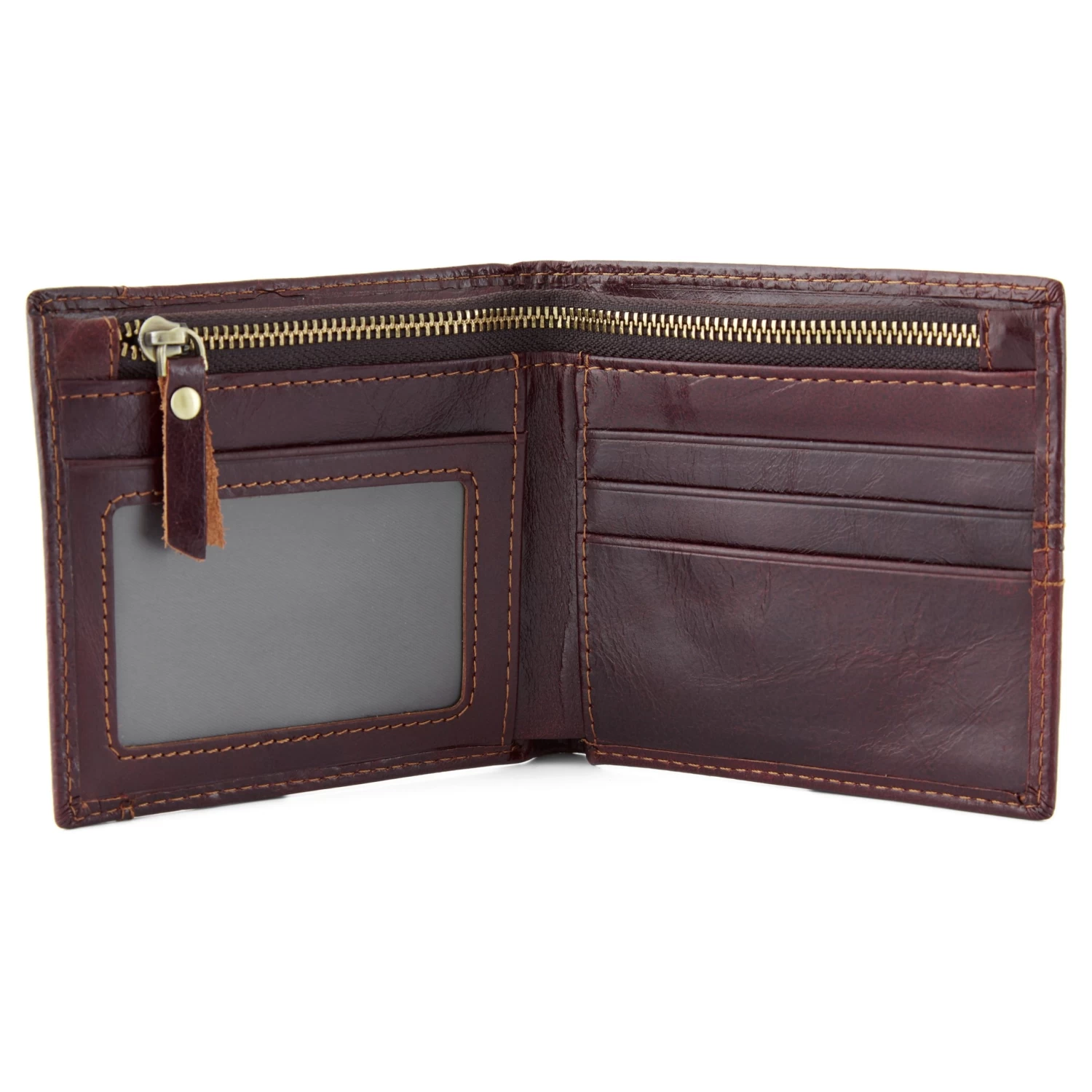This wallet has a unique design and an elegant, vintage feel. This 100% leather wallet features two bill pockets, six card slots, and a removable ID window. It also has a protective RFID lining inside. This way, your credit and debit cards won’t be victims to electronic pick-pocketing.