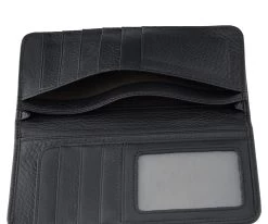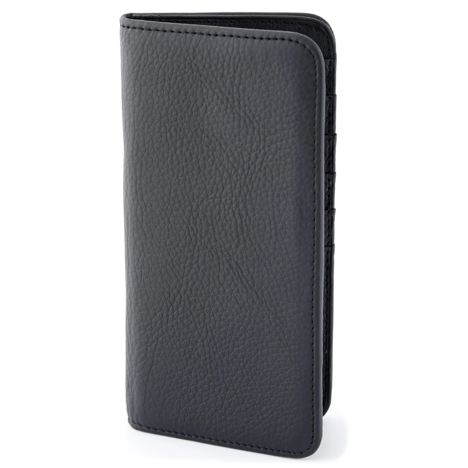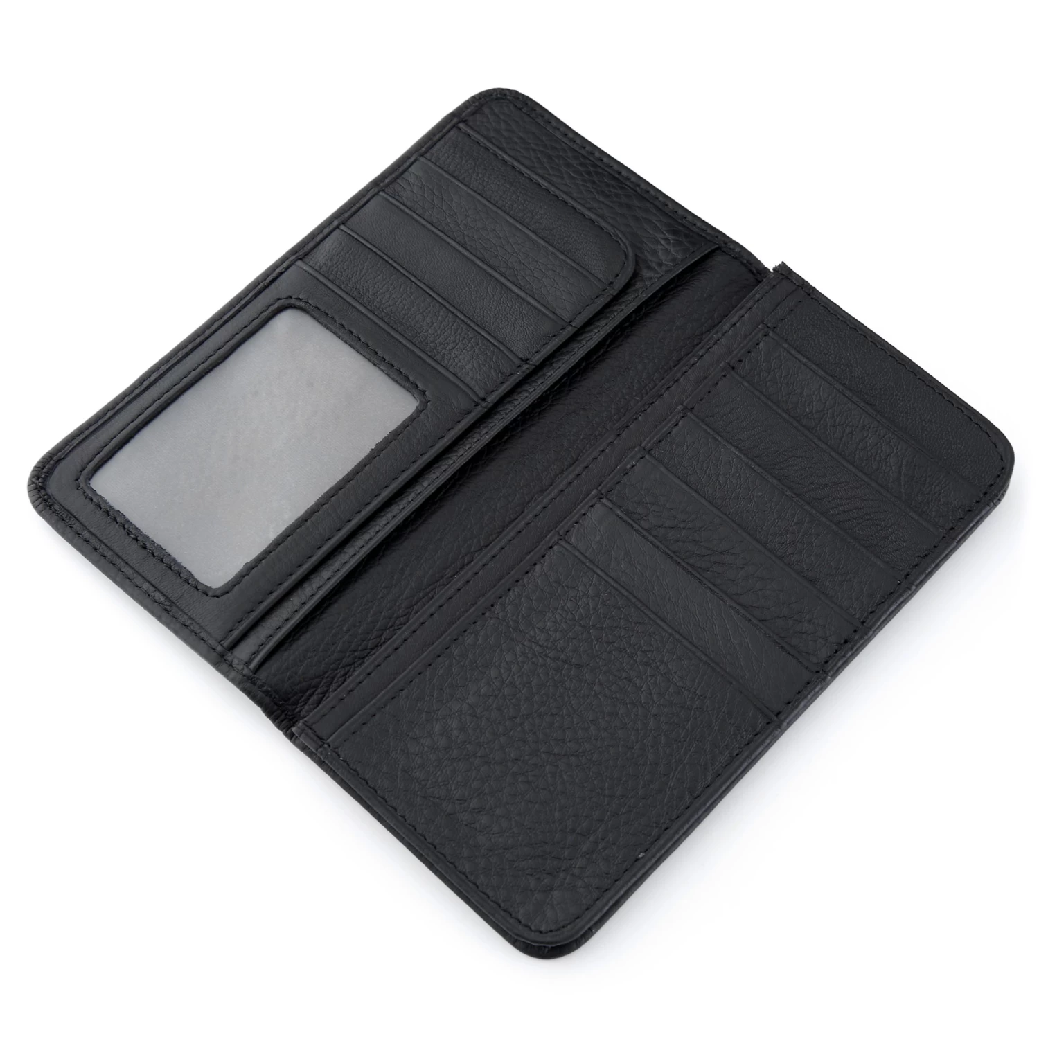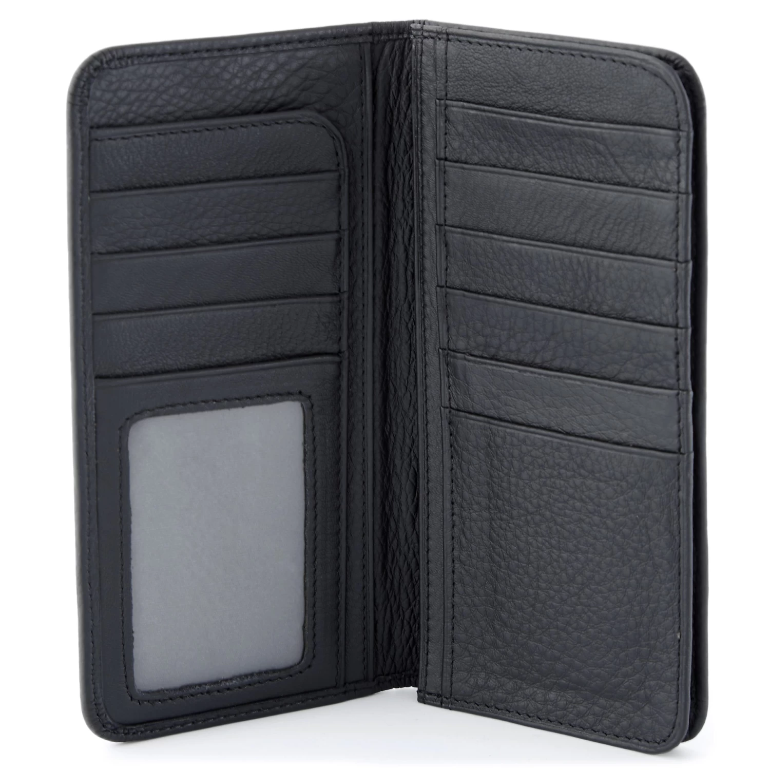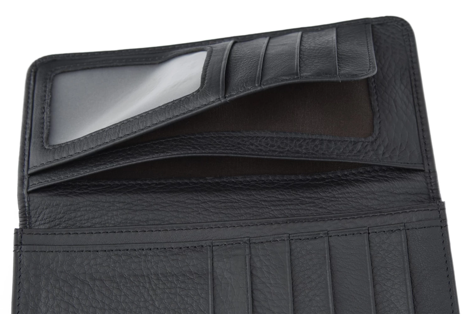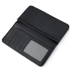 This elegant black piece, made of high-quality genuine leather, seriously nails it in the super-slim-yet-super-functional department. A classic bi-fold design features 10 card slots, each holding up to two cards with ease. An ID window simplifies life and with 4 slip pouches, you’ve got easy access to your essentials.
