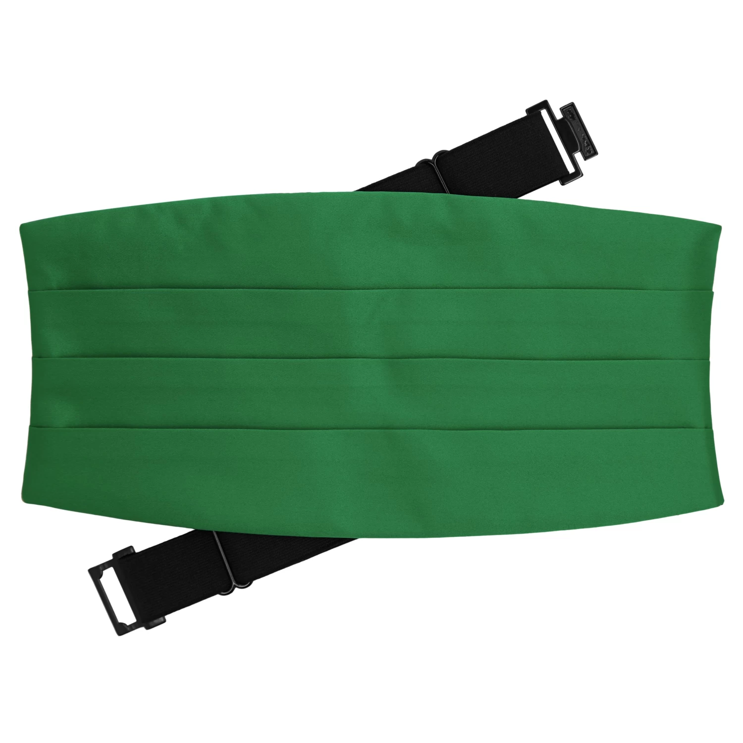 Emerald green is a stunning hue and perfect when crafted into formalwear. This cummerbund is handmade with sleek pleated satin and features an adjustable fastening strap.