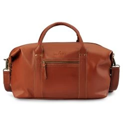 Steal the spotlight with our mocha brown goat leather weekender. Crafted with an unyielding durability and a smooth touch, this vegetable-tanned gem graces the passage of time with sophistication. An external zipped pocket offers easy access, while a generous main compartment comes equipped with an additional zipped pocket for optimal organisation. Customise your carry with the two adjustable hook loops and strut your travels with an ease of mind, as five metal studs safeguard the exquisite leather as you journey.