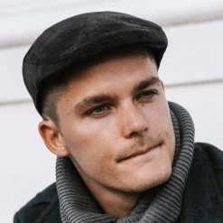 This modern flat cap design for men sits back on your head with its rounded shape. Made from strong, durable material that keeps your head warm during colder weather.
