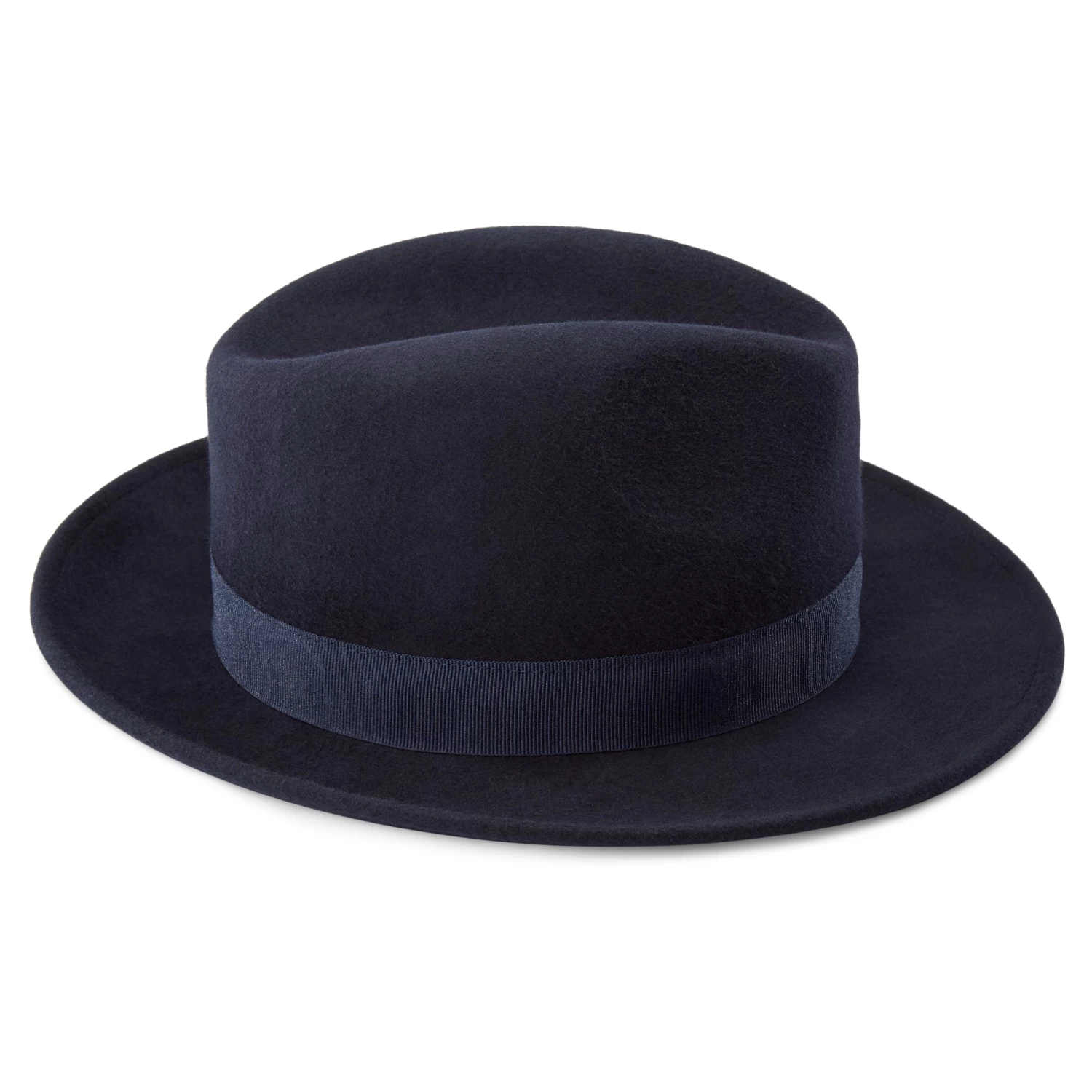 This deep blue fedora for men adds some old-world style to your outfit. Crafted from strong wool with a polyester band around it. Keeps you warm and comfortable while standing up to the cold autumn/winter weather.