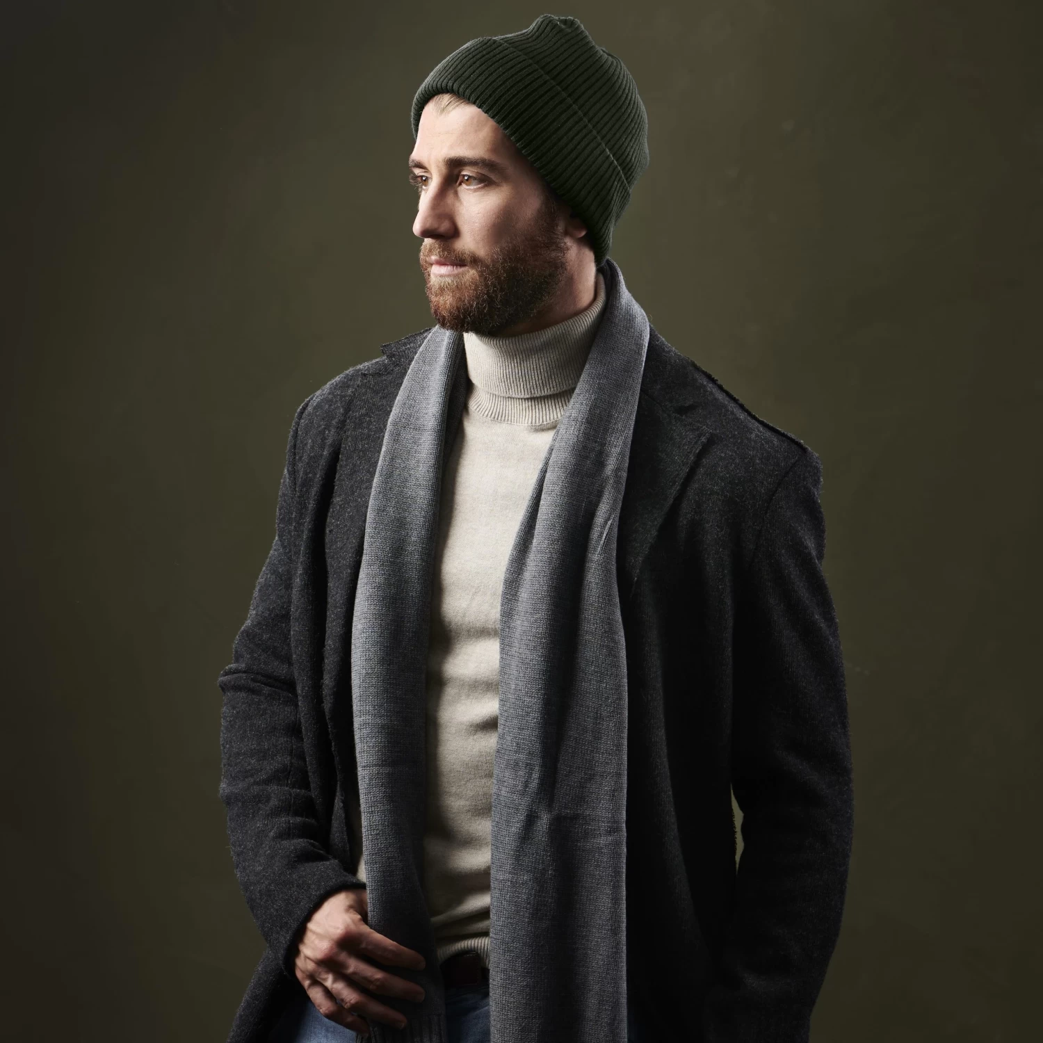 An excellent alternative to brown or black, this olive green beanie for men makes a great neutral pick. Features high-quality materials and meticulous craftsmanship to withstand the season’s wear and tear. Nordic influenced design.