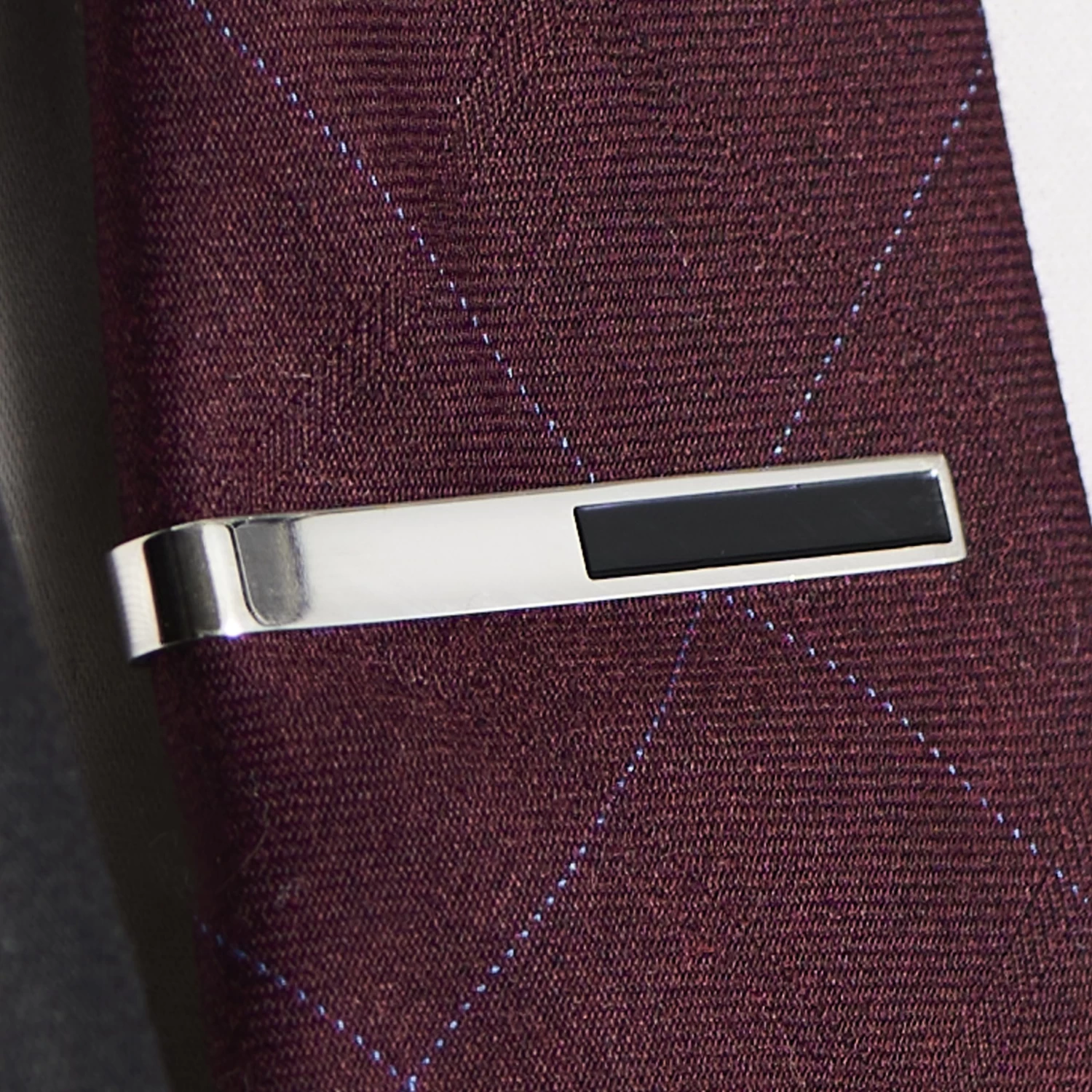 Look good and keep your tie where you want it with this black and silver-tone tie bar.