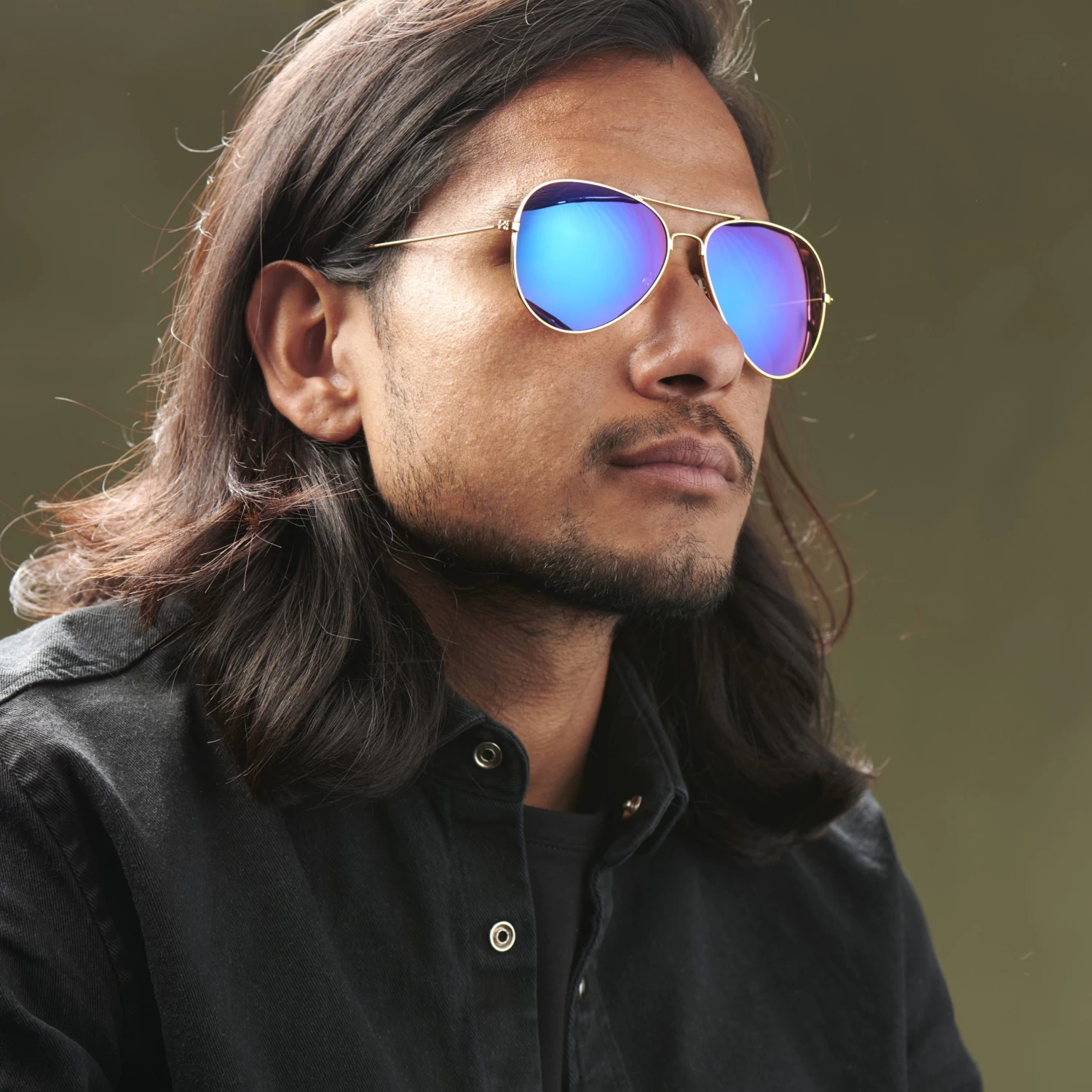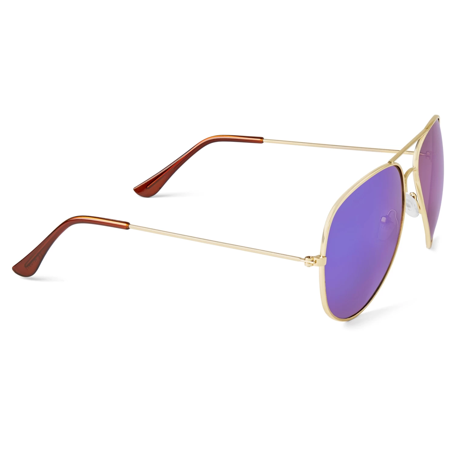 These neat men’s sunglasses feature the classic aviator design. Dark iridescent lenses offer full UVA/UVB protection for your eyes.