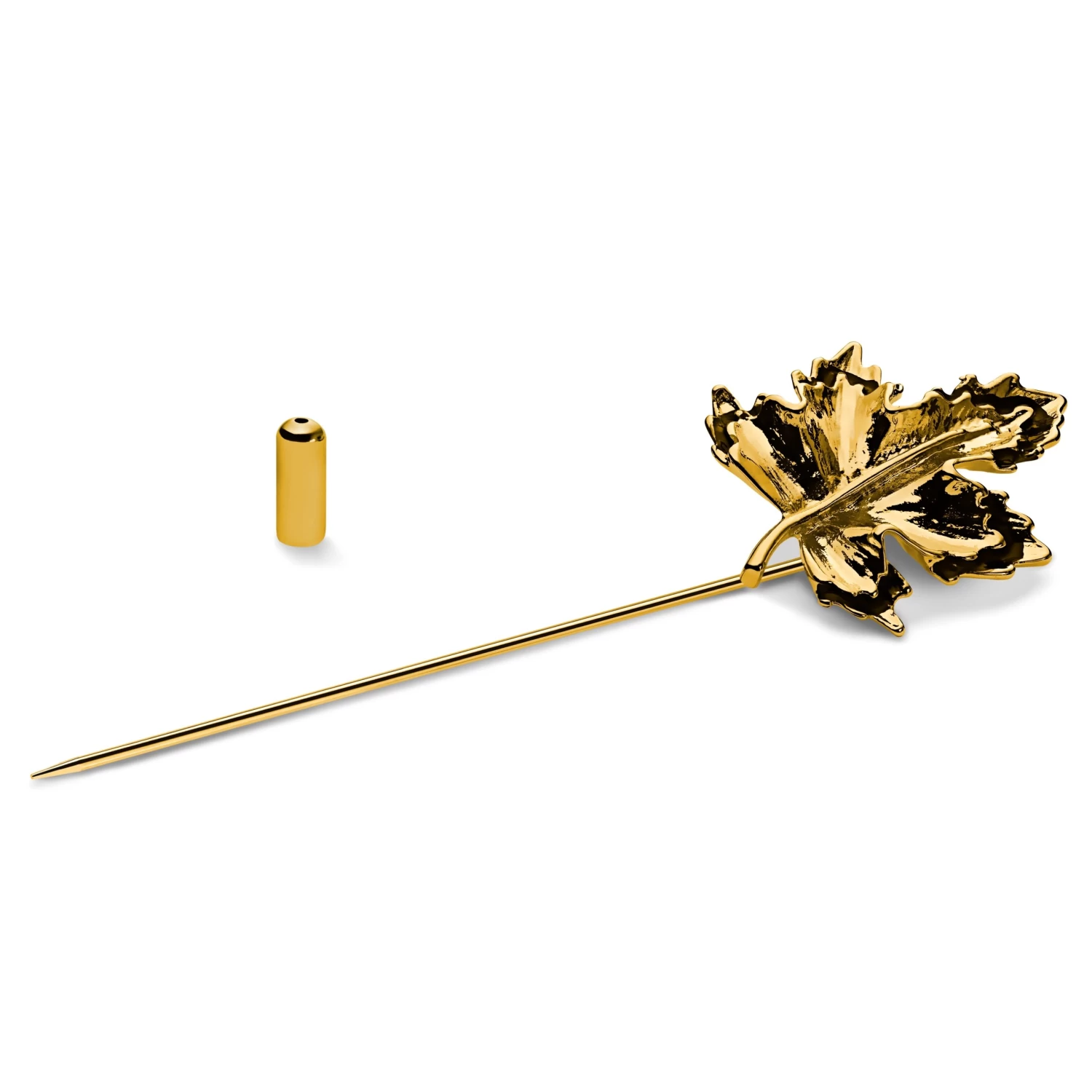 A maple leaf lapel pin for an autumnal charm that’ll last all year round. Crafted from solid brass in a polished gold tone. Bling out your suit with a colour of luxury and the essence of autumn.