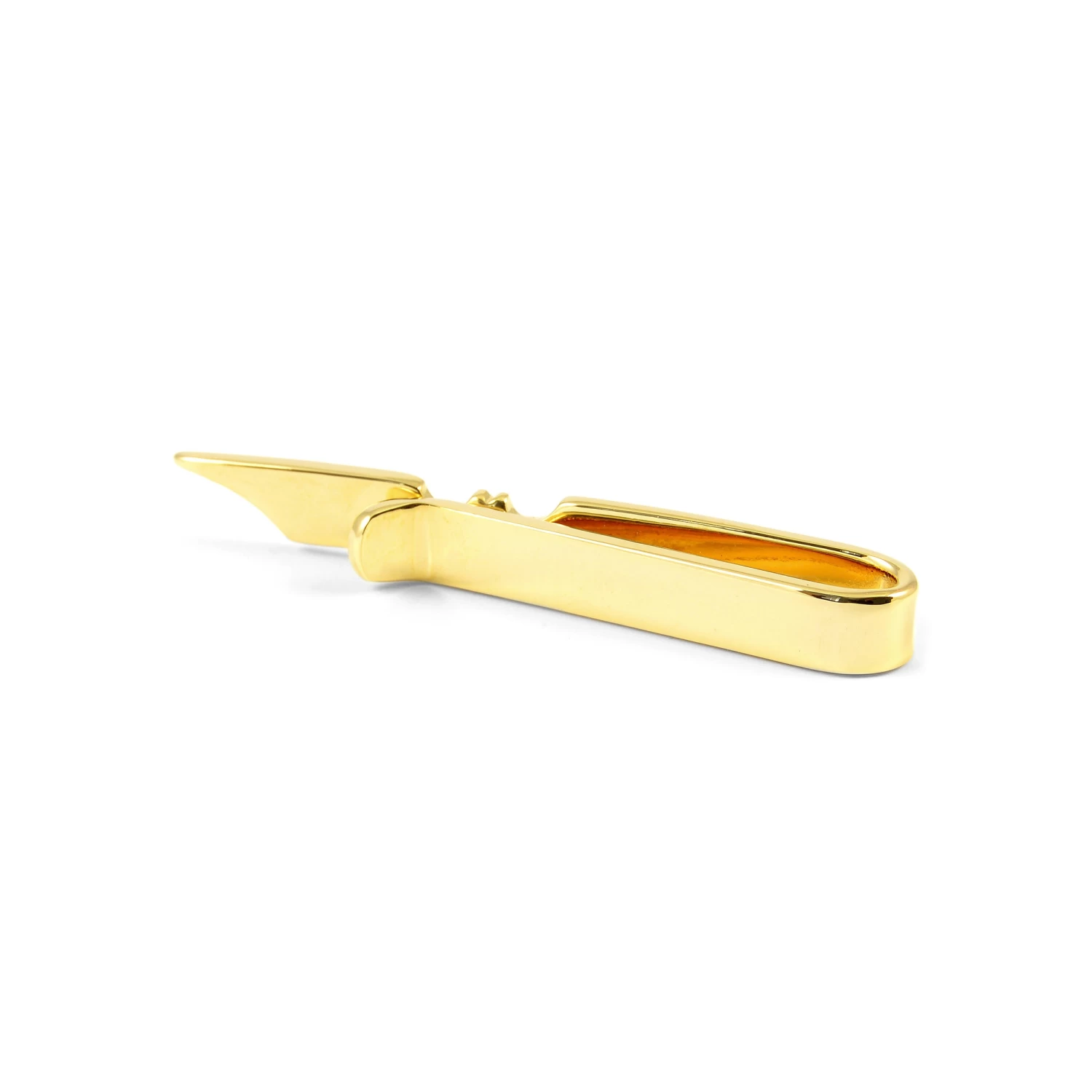 Unconventionally simple, this polished, gold-toned tie bar adds an elegant feel to your outfit, whilst drawing attention to its uneven edge.