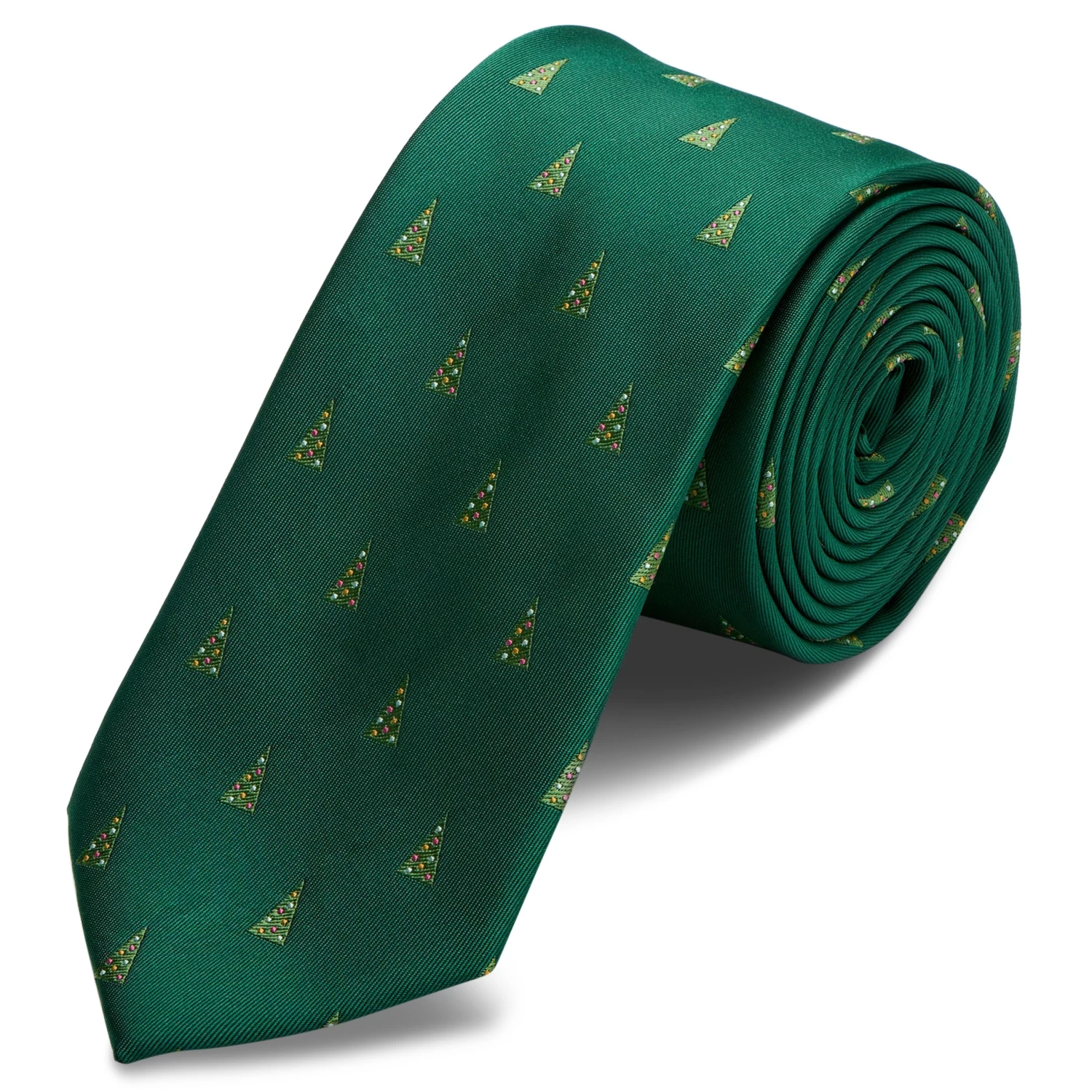 Rock around the Christmas tree with this tie covered in decorated pines!